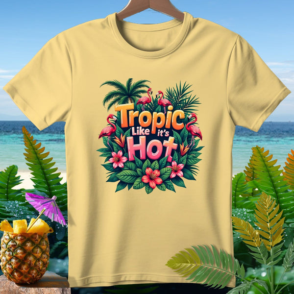 Embrace the tropical vibes with our vibrant "Tropic Like it's Hot" T-shirt from Aloha Threads Clothing and Accessories Brand. Featuring a playful design with flamingos, lush greenery, and exotic flowers, this T-shirt is perfect for anyone who loves to stand out in style. Made from high-quality, soft cotton, it promises comfort and durability. Whether you're heading to the beach, a summer party, or just want to add a splash of color to your wardrobe, this T-shirt is the perfect choice.
