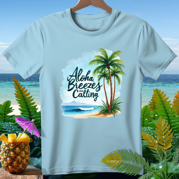 Immerse yourself in island vibes with our Aloha Threads T-Shirt! Featuring a serene beach scene with towering palm trees and the phrase "Aloha Breezes are Calling," this shirt is perfect for anyone who loves the ocean, tropical adventures, or simply embracing a laid-back lifestyle. Crafted from high-quality material, it's comfortable, durable, and ideal for everyday wear or vacation relaxation. Celebrate the aloha spirit with this stylish and breezy T-shirt.