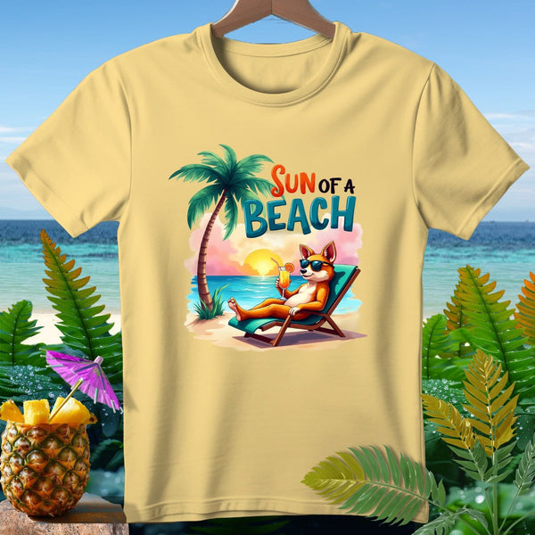 Bring the beach vibes wherever you go with our "Sun of a Beach" T-Shirt from Aloha Threads Clothing and Accessories Brand! This fun and playful design features a relaxed fox lounging under a palm tree with a refreshing tropical drink. Perfect for sunny days, beach outings, or just chilling out, this vibrant graphic will keep you in a summer state of mind all year round. Made from high-quality materials, our T-Shirt ensures comfort and durability. Embrace the sunshine and make a statement with this eye-catching tee!