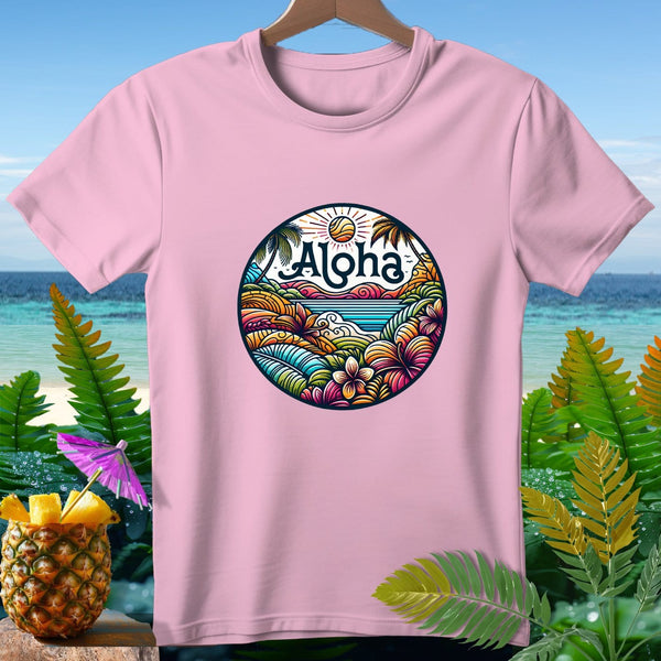 Embrace the spirit of the islands with our vibrant Aloha T-Shirt from Aloha Threads Clothing and Accessories. This beautifully designed shirt features a colorful tropical scene with palm trees, ocean waves, and exotic flowers, capturing the essence of paradise. Crafted from high-quality materials for ultimate comfort and durability, this Aloha T-Shirt is perfect for beach days, casual outings, or simply bringing a touch of island life to your wardrobe. Enjoy the laid-back vibe and standout style this shirt brings to any outfit.