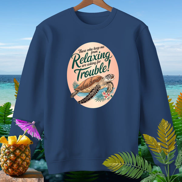 Embrace the beachy vibes with our Premium Sweatshirt from Comfort Colors! This garment-dyed, relaxed fit sweatshirt is made with 80% soft ringspun cotton, offering a cozy and comfortable wear. Perfect for those laid-back beach days, this sweatshirt features a playful turtle design and an adventurous quote: "Those who keep me from relaxing are asking for trouble!" Suitable for cool evenings by the shore or a casual day out, this sweatshirt is a must-have for your wardrobe. Dive into comfort and style today!
