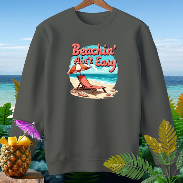 Embrace the beach vibes with our premium sweatshirt from Comfort Colors! Crafted with 80% soft ringspun cotton, this garment-dyed sweatshirt offers a relaxed fit perfect for enjoying breezy beach weather. With a fun and vibrant "Beachin' Ain't Easy" design, this sweatshirt brings the laid-back charm of the seaside to your wardrobe. Whether you're walking along the shore or lounging by the water, this cozy and stylish sweatshirt is your go-to for seaside relaxation. Surf the waves of comfort and style - get yours today!
