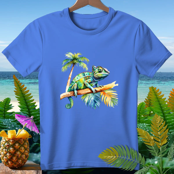 Embrace the vibrant spirit of the tropics with our exclusive Aloha Threads T-Shirt featuring a stunning watercolor chameleon perched on a branch with lush palm leaves in the background. This eco-friendly, soft cotton tee is perfect for nature enthusiasts and island lovers. Available in various sizes, enjoy comfort and style with this eye-catching, colorful design.