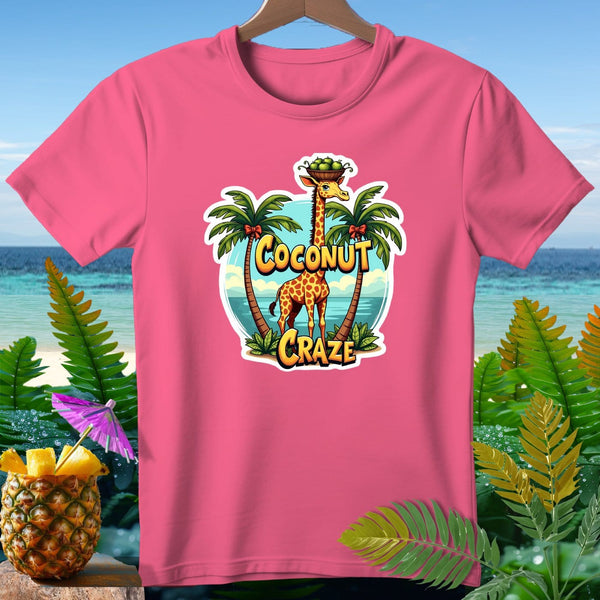 Embrace the tropical vibes with our "Coconut Craze" T-Shirt from the Sassy Collection of our Aloha Thread Brand. Featuring a playful giraffe with a basket of coconuts, set against a vibrant beach backdrop with palm trees, this shirt brings the fun and relaxation of the tropics to your wardrobe. Perfect for casual days or beach outings, this shirt is sure to add a splash of humor and style to any outfit.