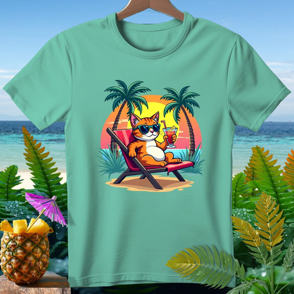 Embrace the island vibes with our Aloha Threads tropical T-shirt! Featuring a laid-back cat soaking up the sun on a beach, this fun and vibrant design is perfect for those who love cats and the beach life. Made with high-quality fabric, it ensures comfort and durability for any casual occasion. Whether you're heading to a beach party or lounging at home, this shirt is a must-have for your wardrobe. Spread the Aloha spirit and add a touch of whimsy to your outfit with this unique T-shirt!