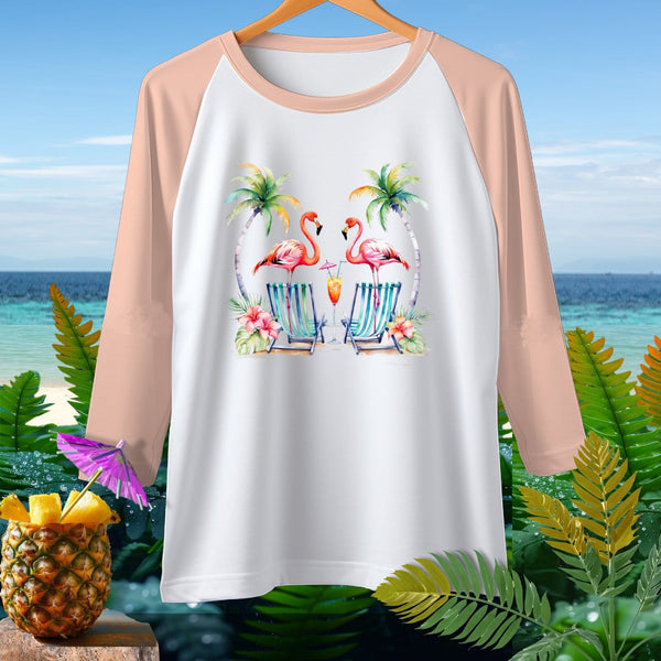 Flamingo Beach ~Raglan 3/4 Sleeve Tee
