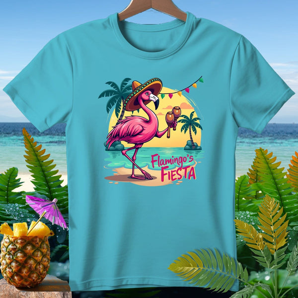Step into a tropical vibe with our "Flamingo's Fiesta" T-shirt from the Sassy Collection by Aloha Thread Brand. Featuring a vibrant design of a flamingo wearing a sombrero, dancing with maracas, and set against a backdrop of palm trees and the beach, this T-shirt is perfect for any fiesta lover. Made from soft, high-quality fabric, it's ideal for casual outings or parties. Bring the fiesta wherever you go with this eye-catching and playful design.