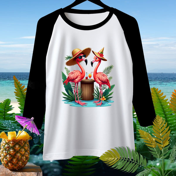 Flamingo Sippers ~Raglan 3/4 Sleeve Tee