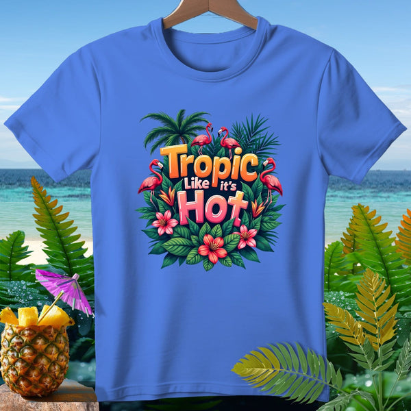Embrace the tropical vibes with our vibrant "Tropic Like it's Hot" T-shirt from Aloha Threads Clothing and Accessories Brand. Featuring a playful design with flamingos, lush greenery, and exotic flowers, this T-shirt is perfect for anyone who loves to stand out in style. Made from high-quality, soft cotton, it promises comfort and durability. Whether you're heading to the beach, a summer party, or just want to add a splash of color to your wardrobe, this T-shirt is the perfect choice.