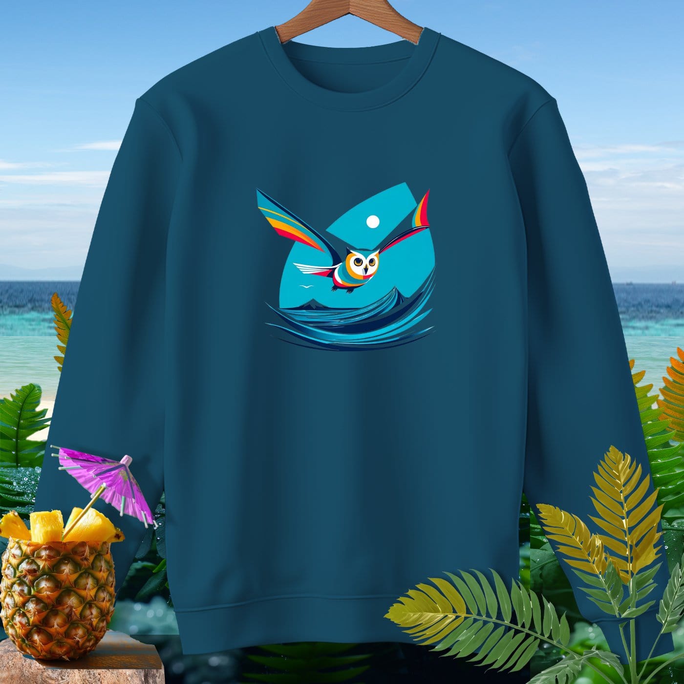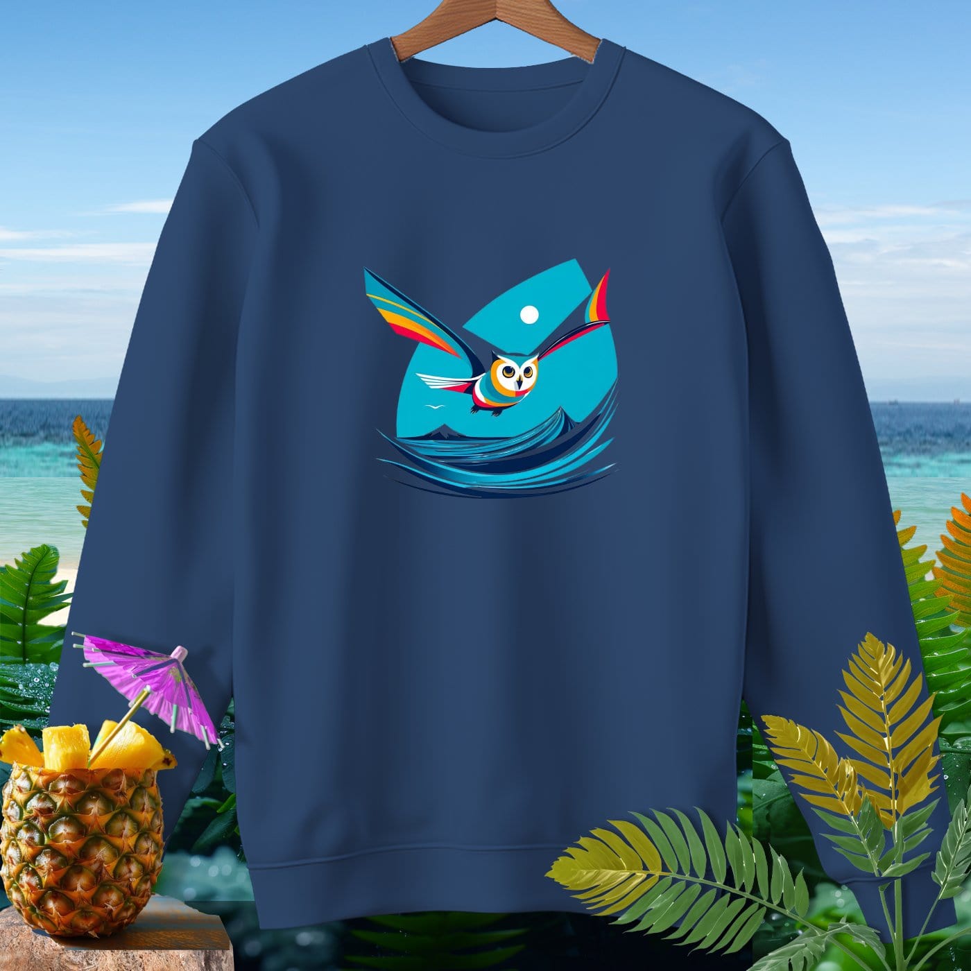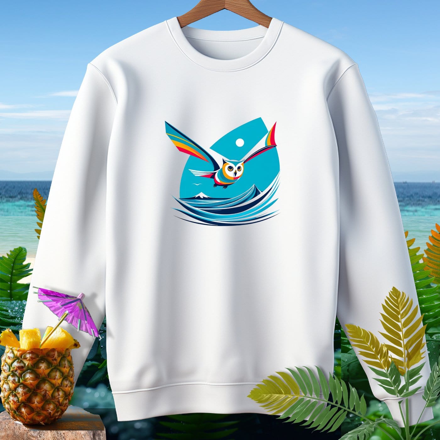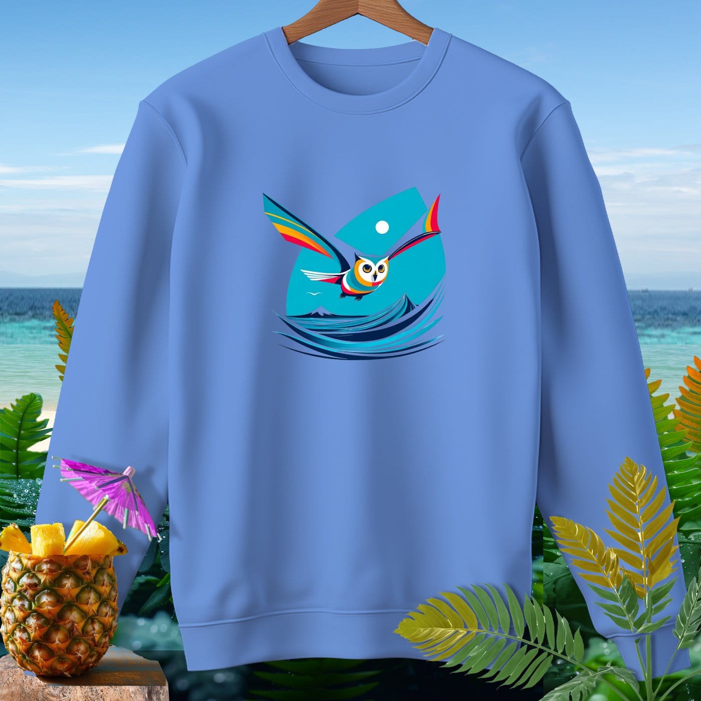Soar over the waves in style with our Premium Sweatshirt from Comfort Colors. Made with 80% soft ringspun cotton, this garment-dyed sweatshirt offers a relaxed fit for ultimate comfort. Featuring a vibrant design of an owl flying over the beach, it's perfect for those breezy beach days and cool summer evenings. Let your spirit fly high with this unique and colorful piece!