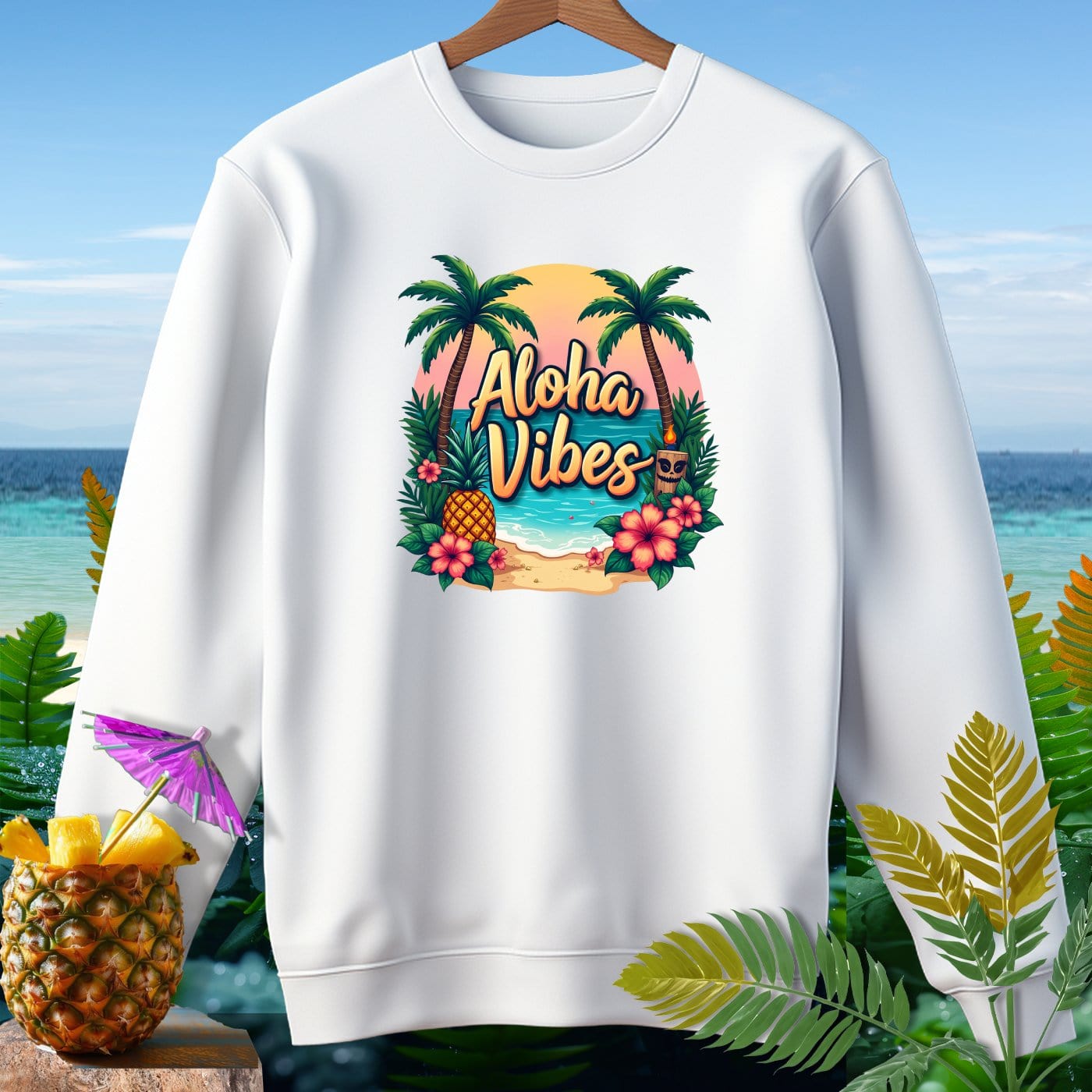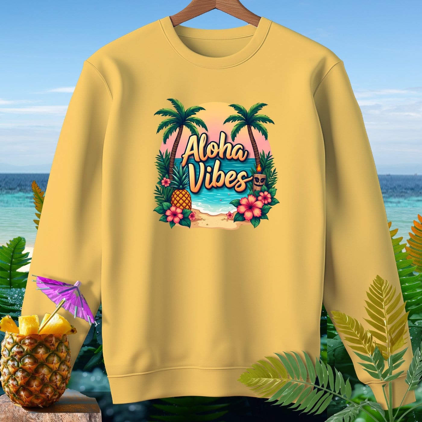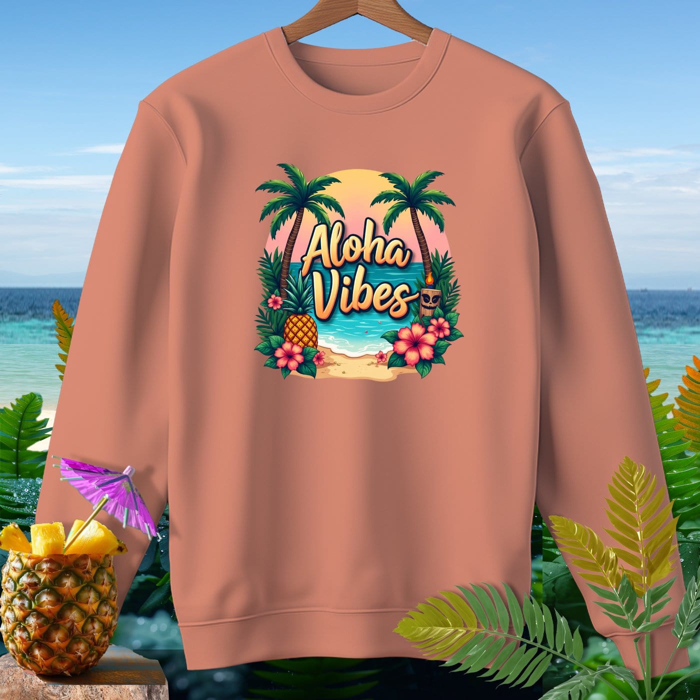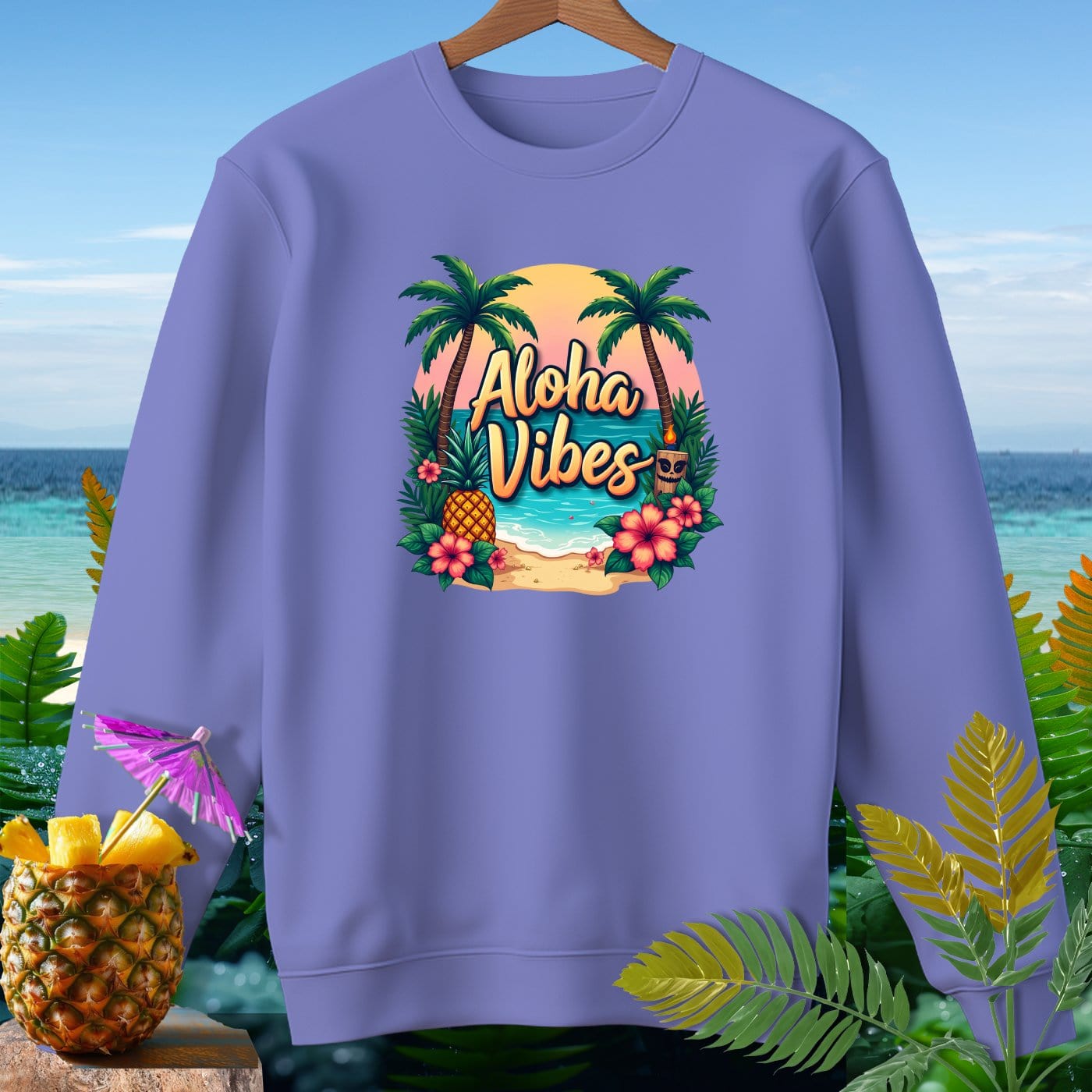 Embrace the ultimate beach vibes with our Premium Comfort Colors Sweatshirt! This vibrant "Aloha Vibes" design is perfect for sunny days and cool beach evenings. Crafted from 80% soft ringspun cotton and garment-dyed for that unbeatable softness and unique, worn-in look. The relaxed fit ensures maximum comfort, whether you're lounging by the ocean or exploring a tropical paradise. Feel the tropical breeze and get ready to turn heads with this stylish and cozy sweatshirt.