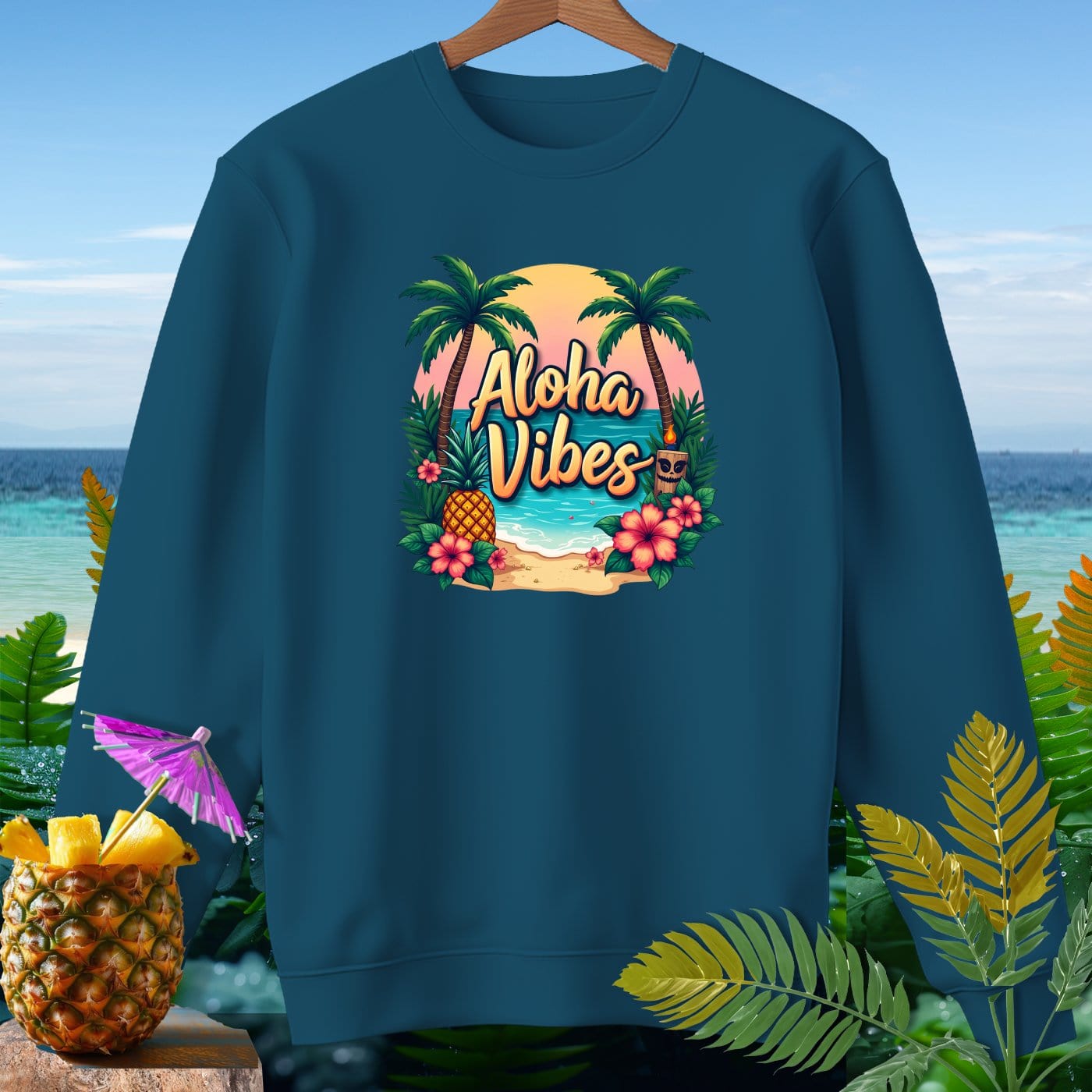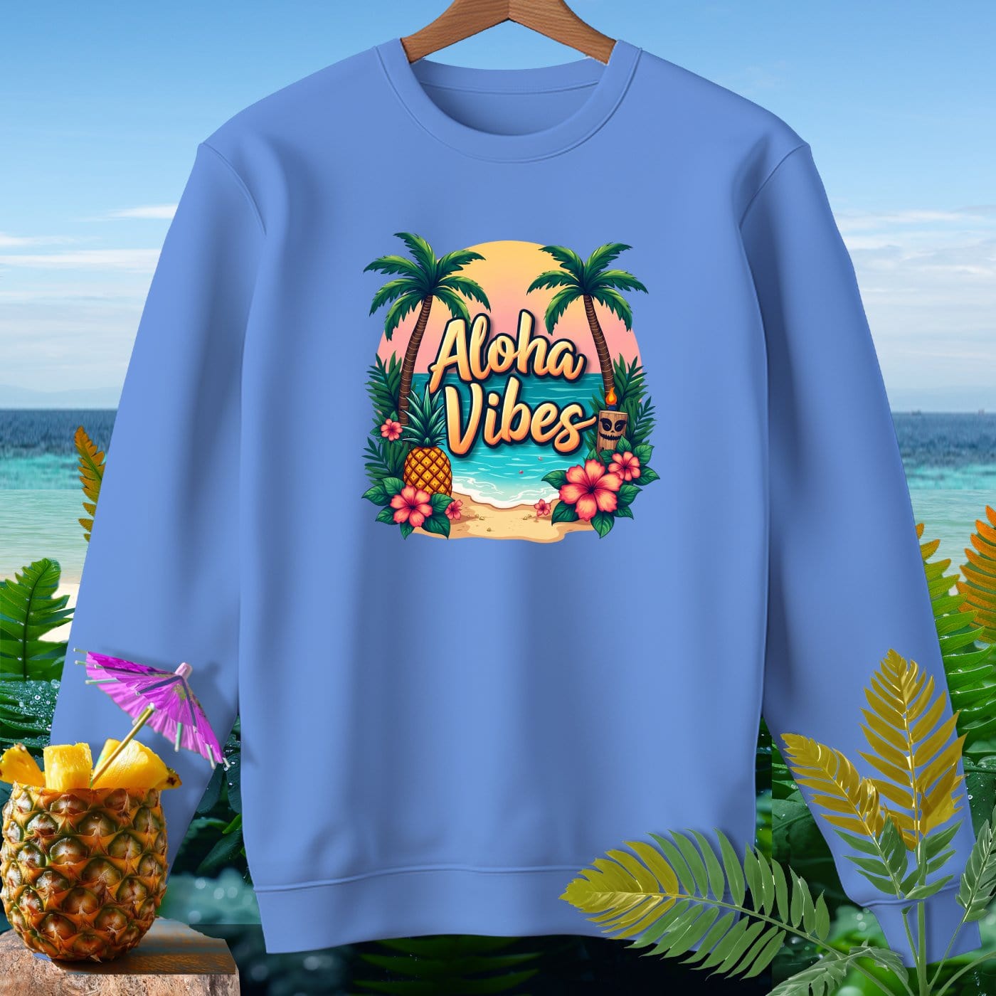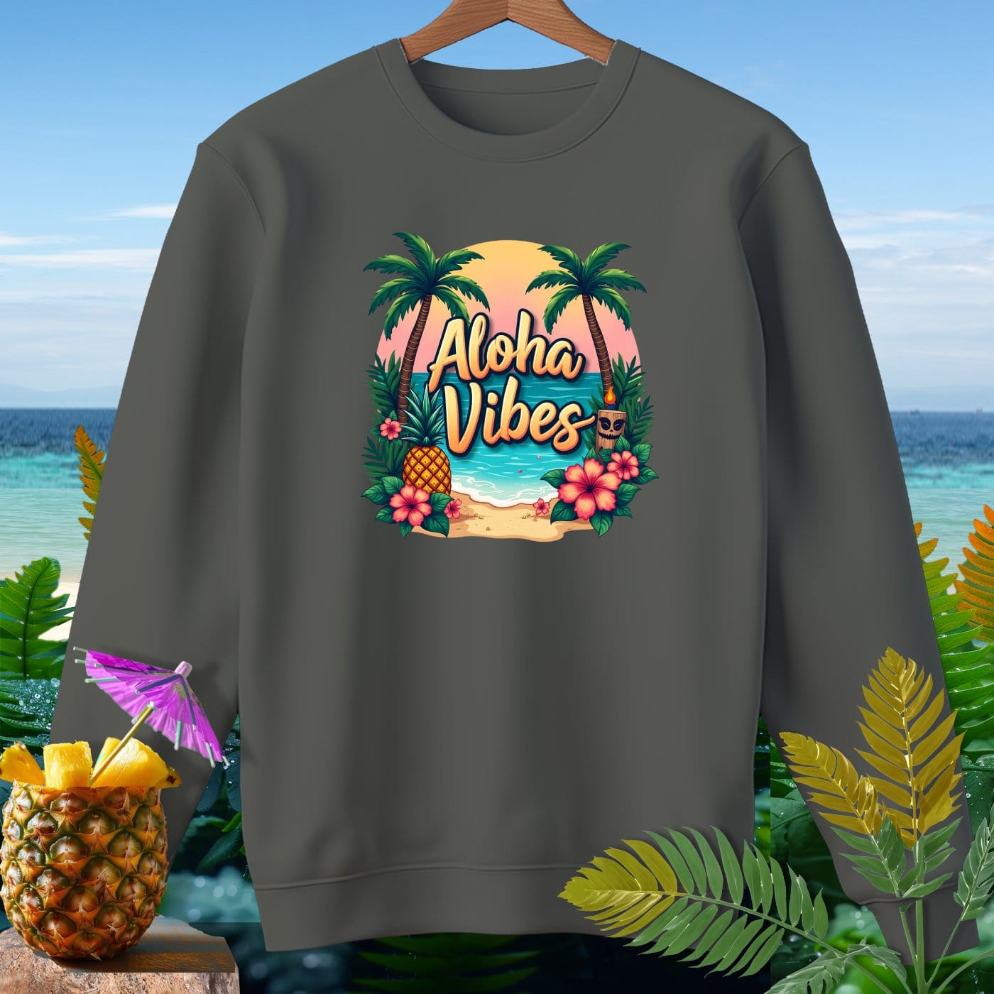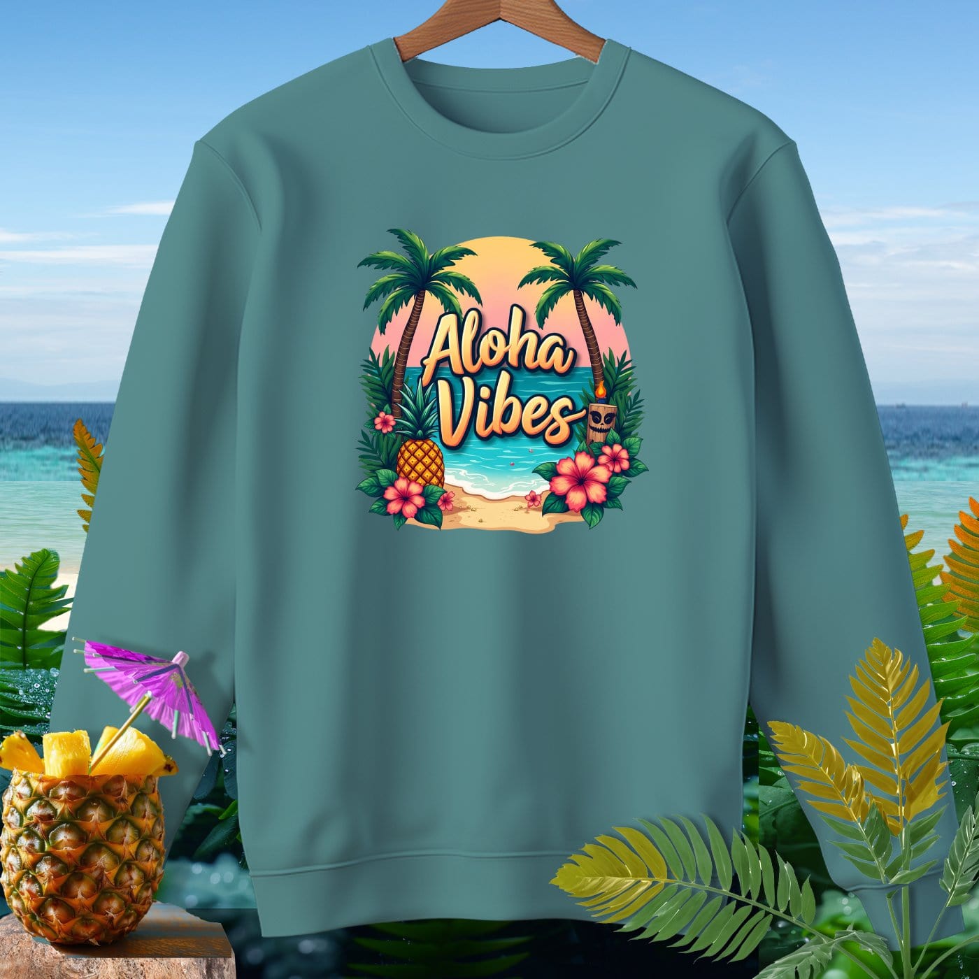 Embrace the ultimate beach vibes with our Premium Comfort Colors Sweatshirt! This vibrant "Aloha Vibes" design is perfect for sunny days and cool beach evenings. Crafted from 80% soft ringspun cotton and garment-dyed for that unbeatable softness and unique, worn-in look. The relaxed fit ensures maximum comfort, whether you're lounging by the ocean or exploring a tropical paradise. Feel the tropical breeze and get ready to turn heads with this stylish and cozy sweatshirt.