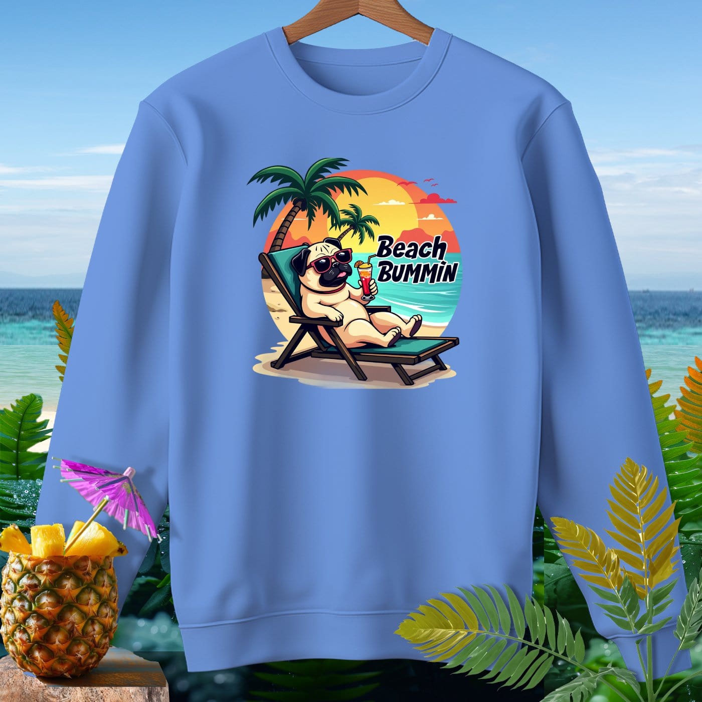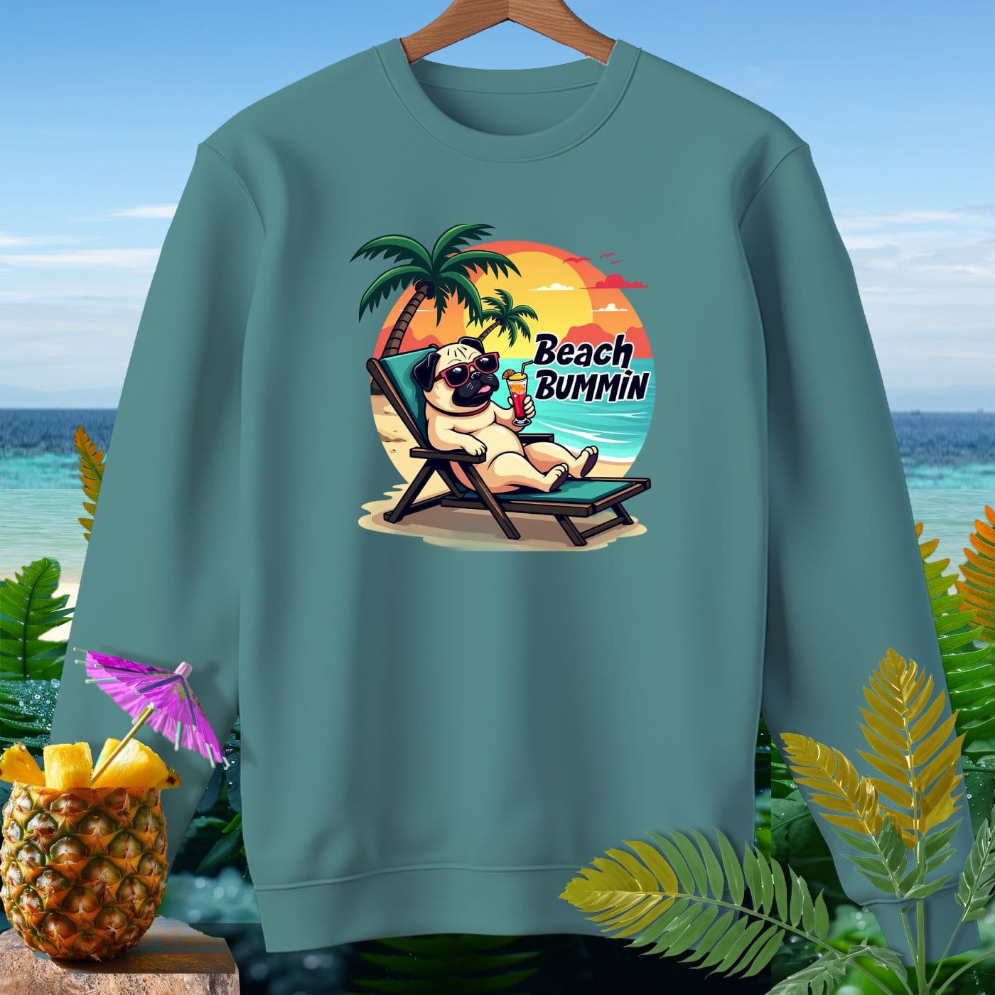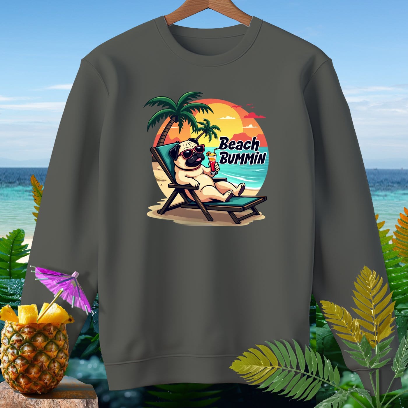 Pug Beach Bummin ~ Premium Sweatshirt
