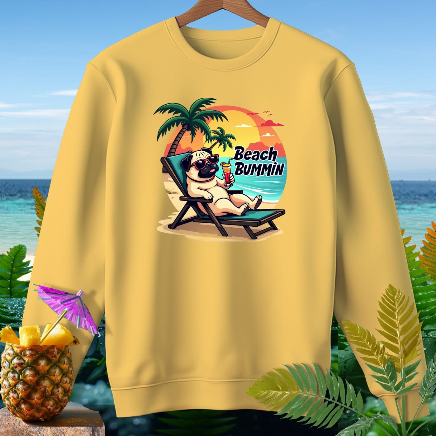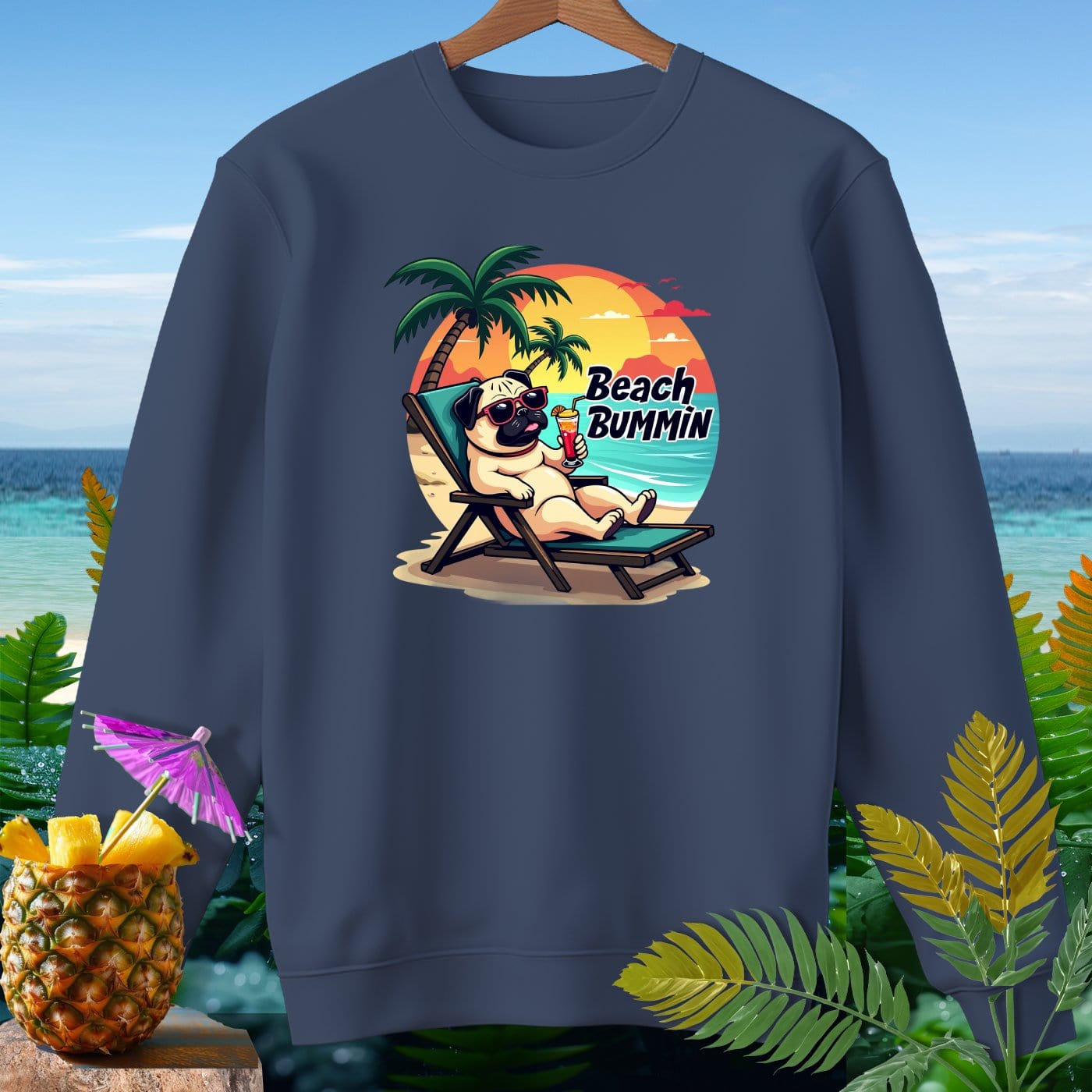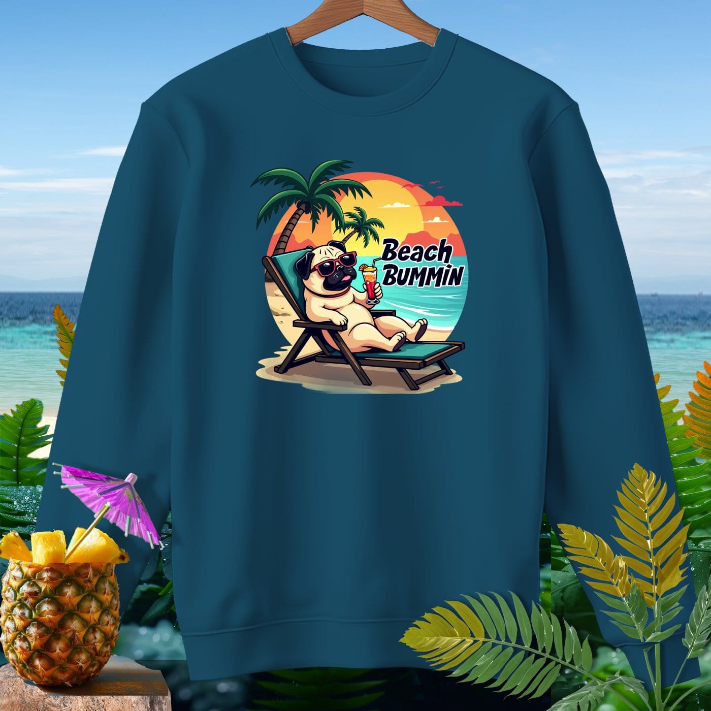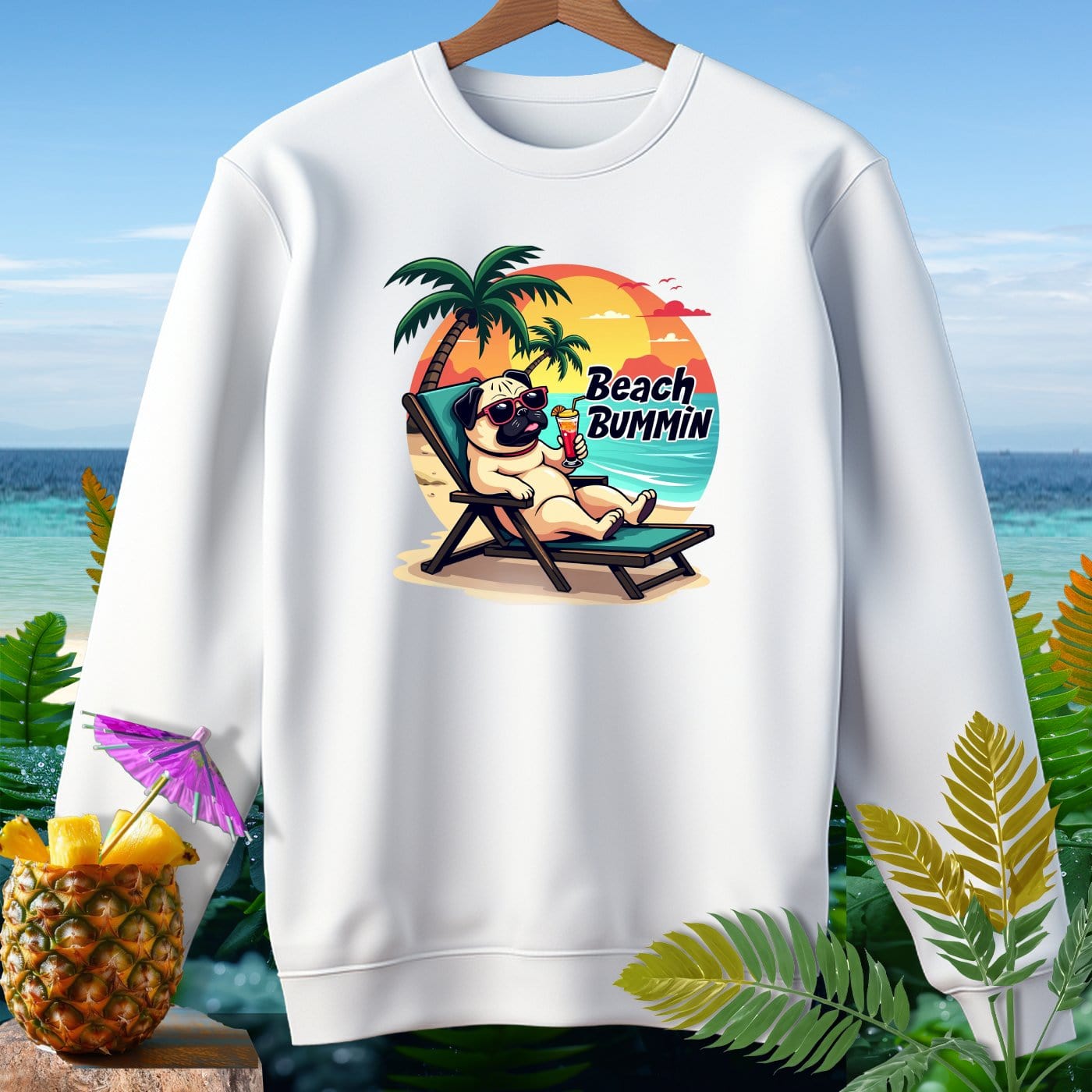 Pug Beach Bummin ~ Premium Sweatshirt