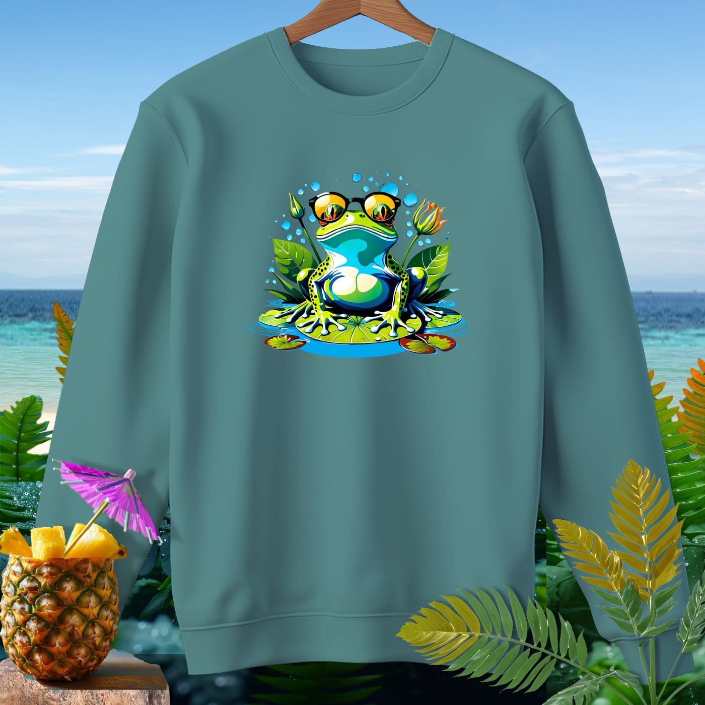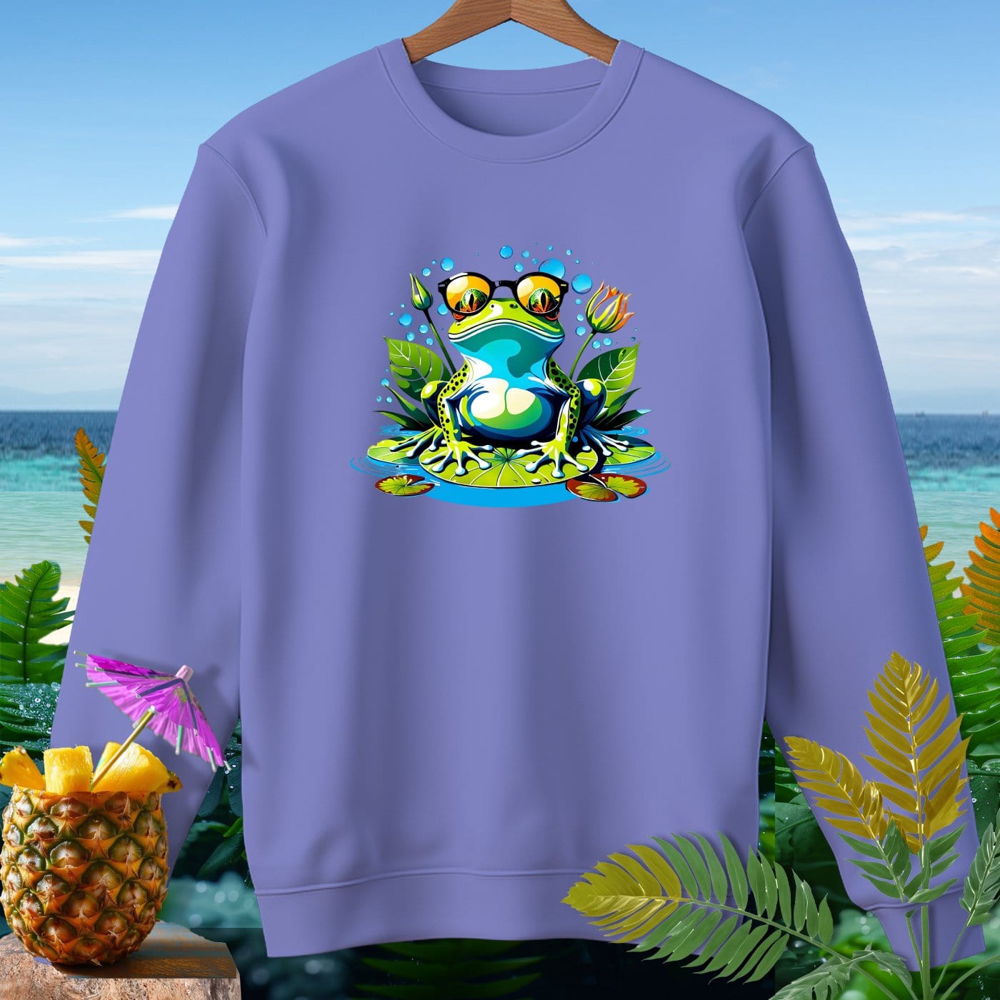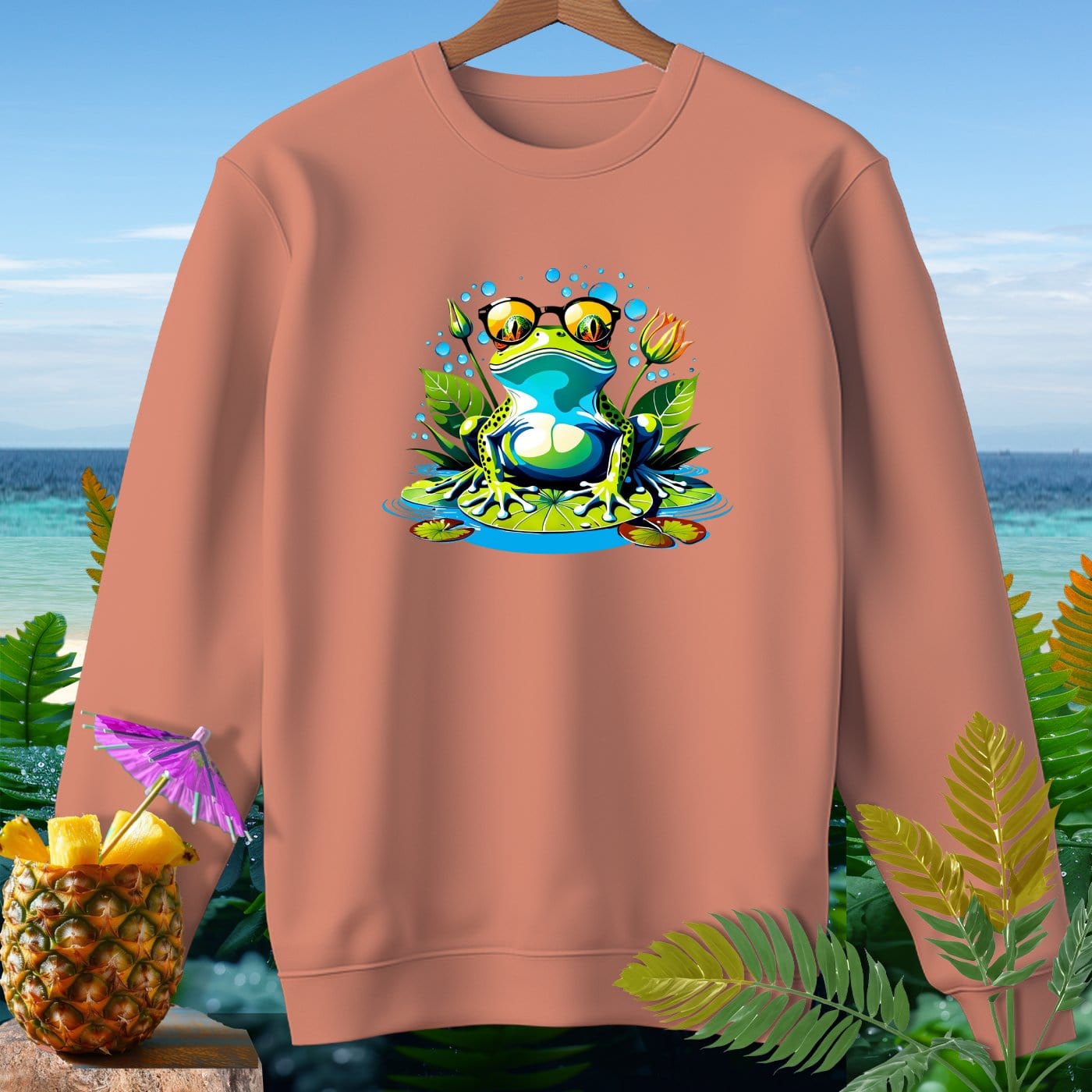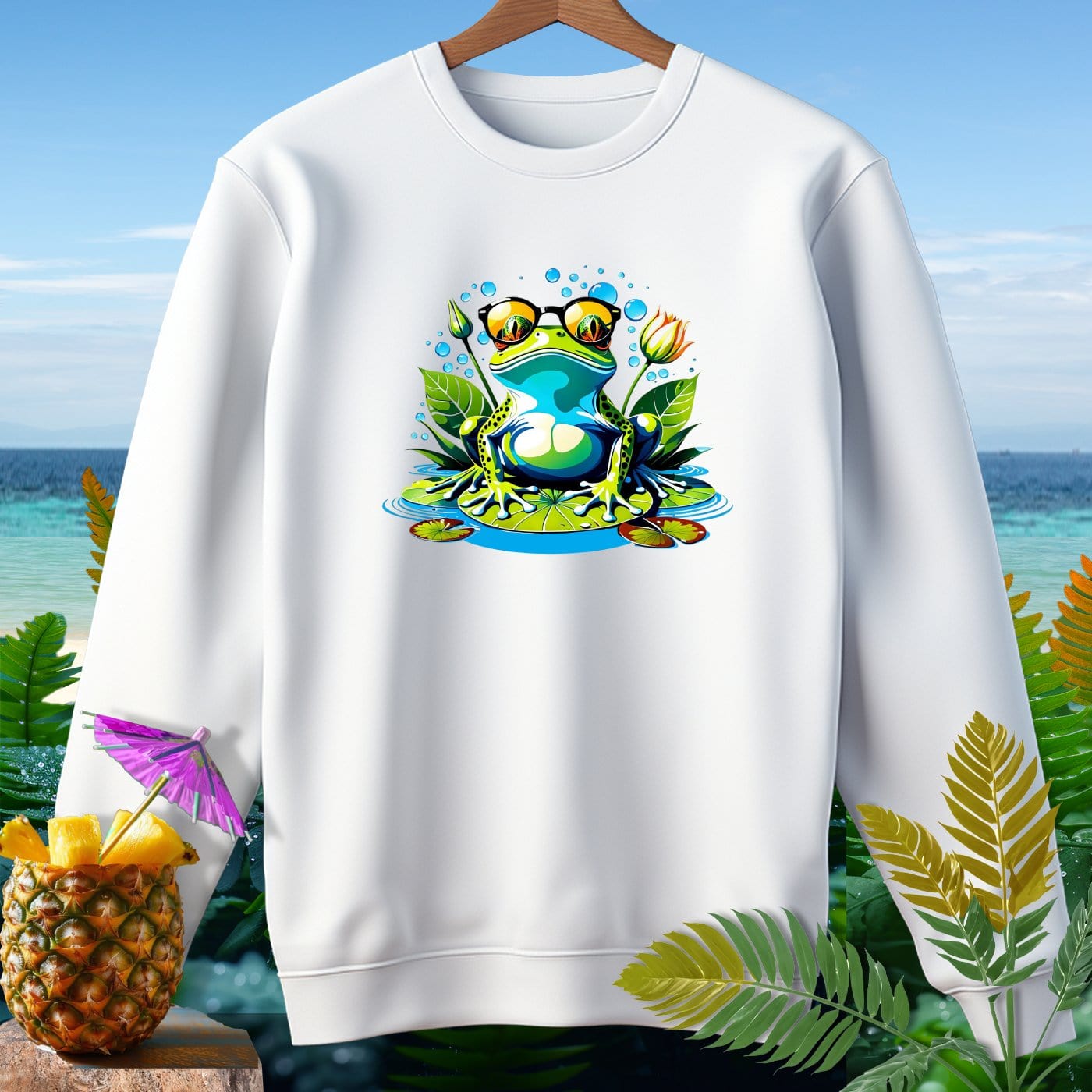 Dive into ultimate comfort with our Premium Sweatshirt from Comfort Colors. Crafted with 80% soft ringspun cotton, this relaxed fit sweatshirt is perfect for those breezy beach days. The garment-dyed fabric ensures a long-lasting, vibrant look, featuring a fun and whimsical design of a frog with sunglasses on a lily pad. Embrace the laid-back beach vibe with this cozy and stylish piece that's sure to become a favorite in your wardrobe.