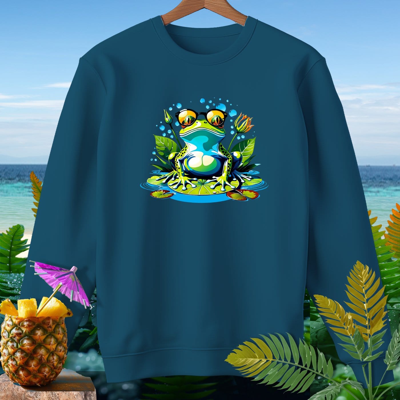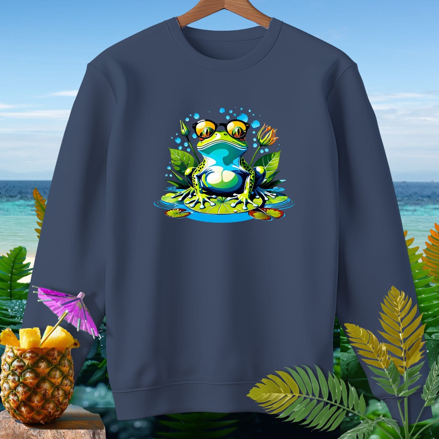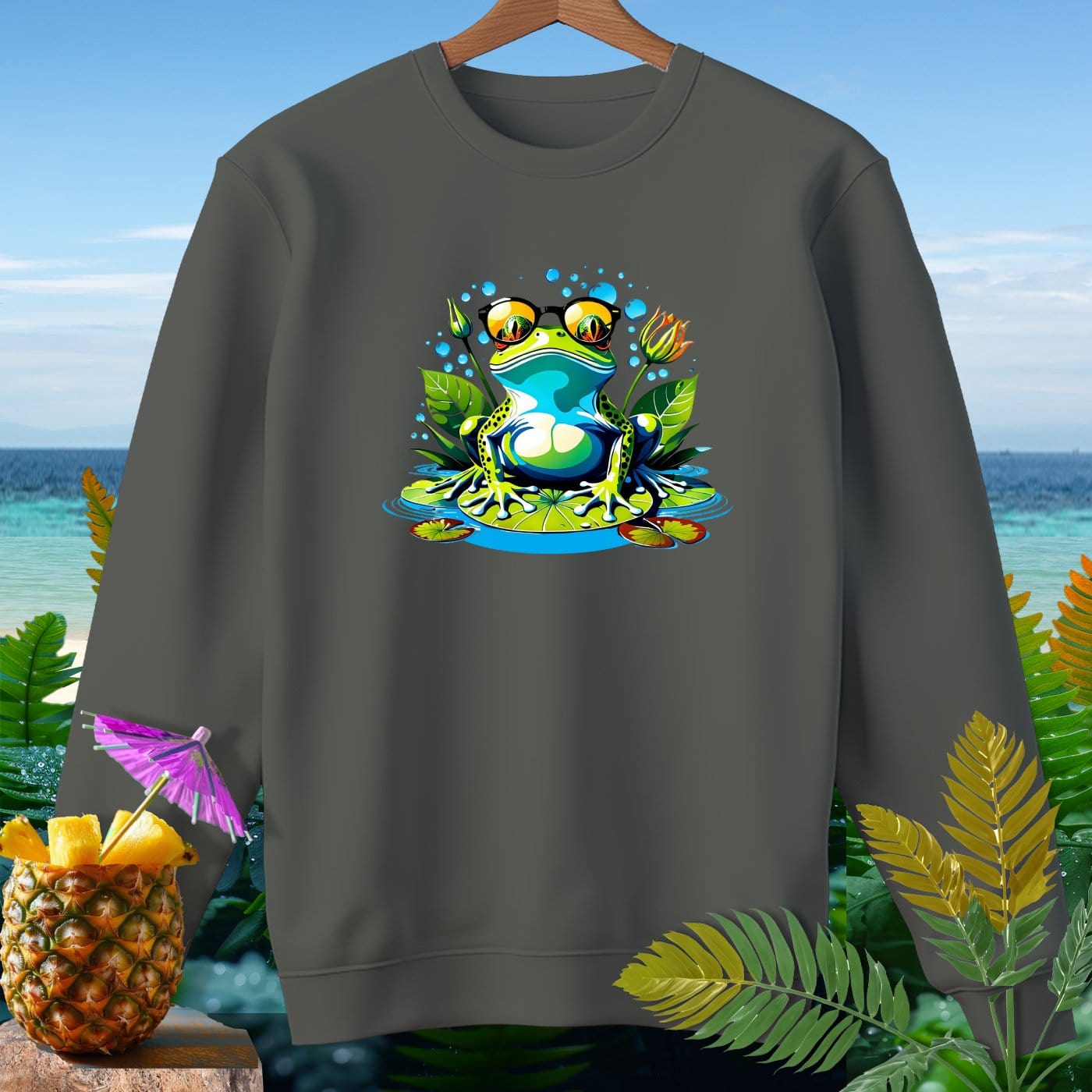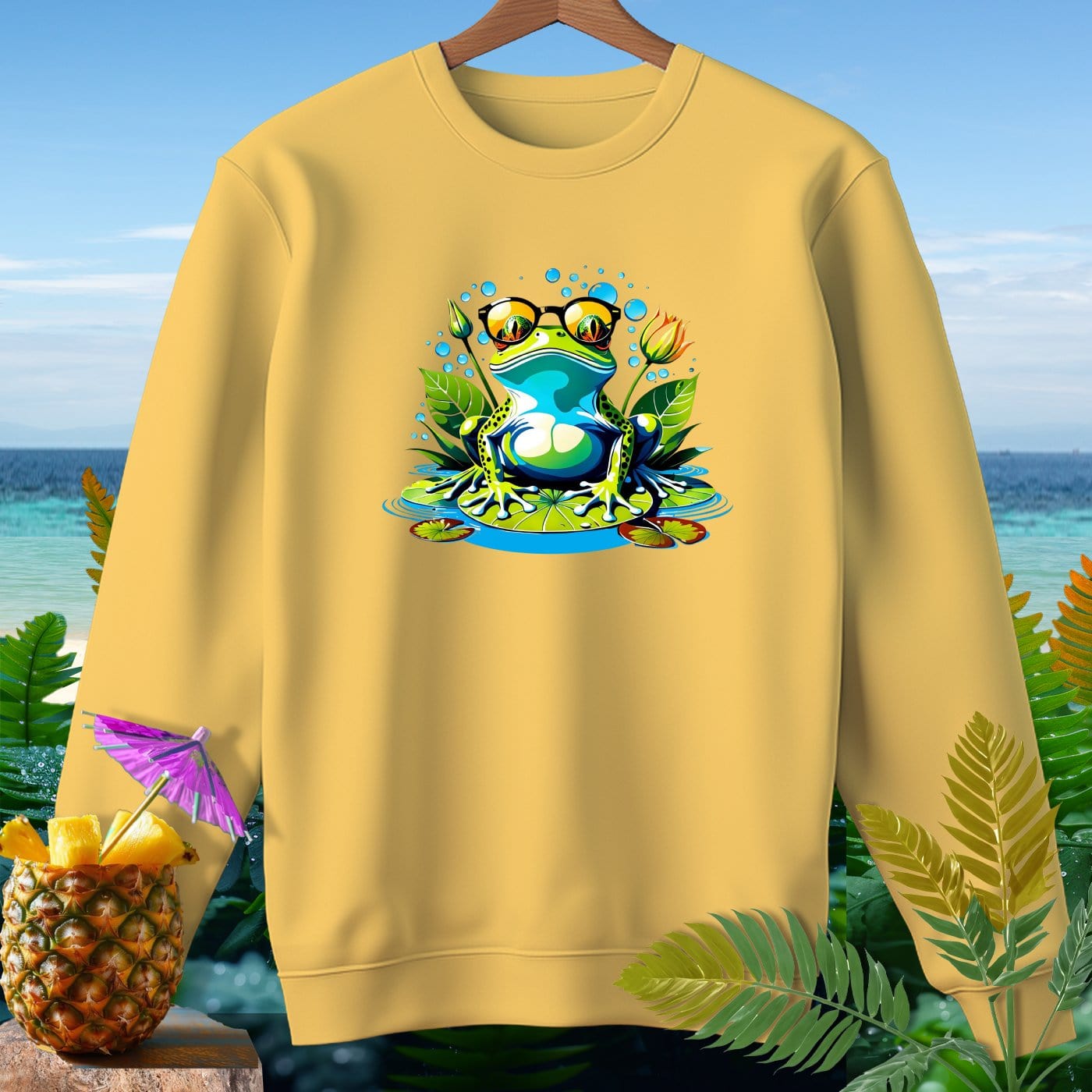 Dive into ultimate comfort with our Premium Sweatshirt from Comfort Colors. Crafted with 80% soft ringspun cotton, this relaxed fit sweatshirt is perfect for those breezy beach days. The garment-dyed fabric ensures a long-lasting, vibrant look, featuring a fun and whimsical design of a frog with sunglasses on a lily pad. Embrace the laid-back beach vibe with this cozy and stylish piece that's sure to become a favorite in your wardrobe.