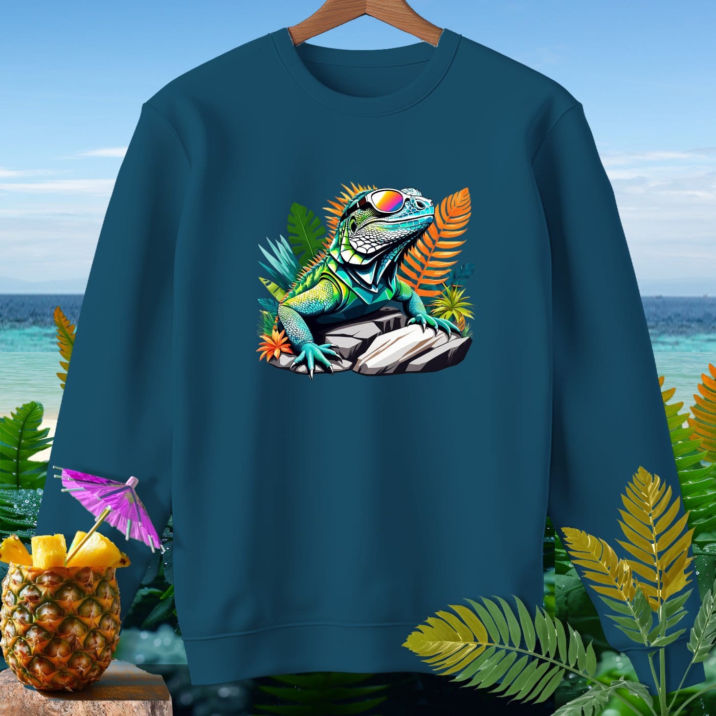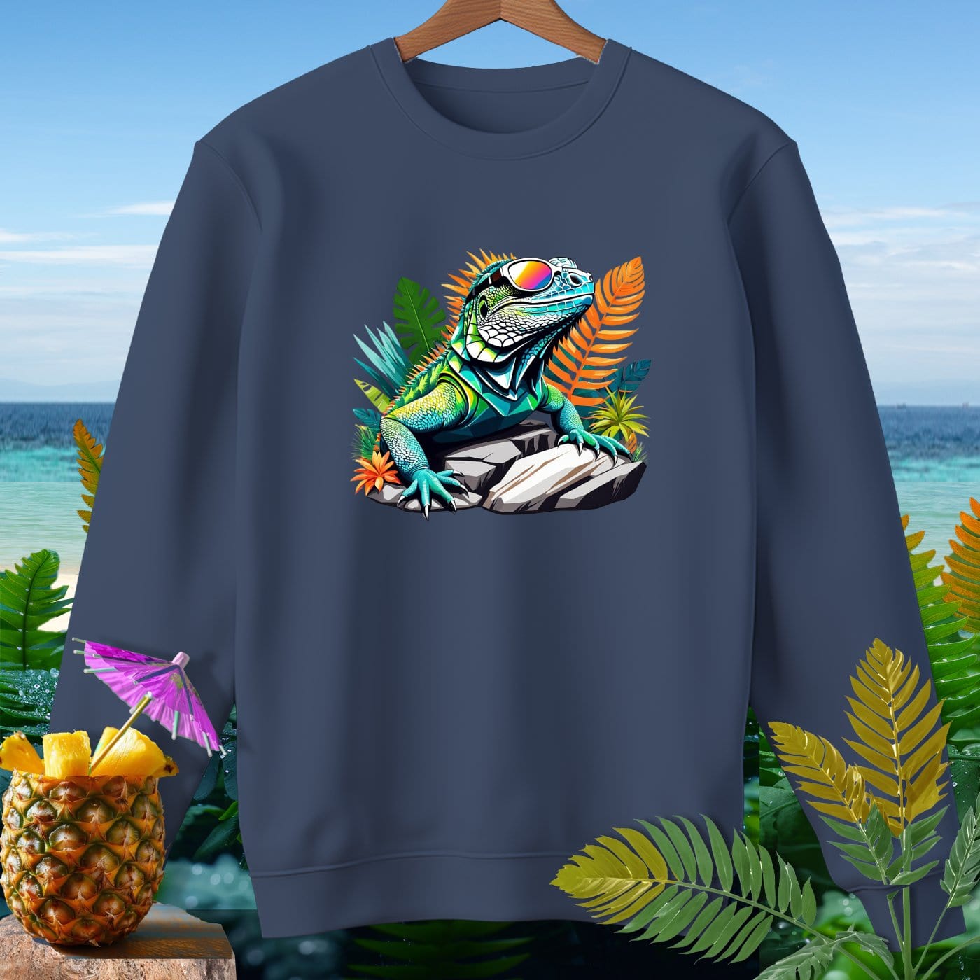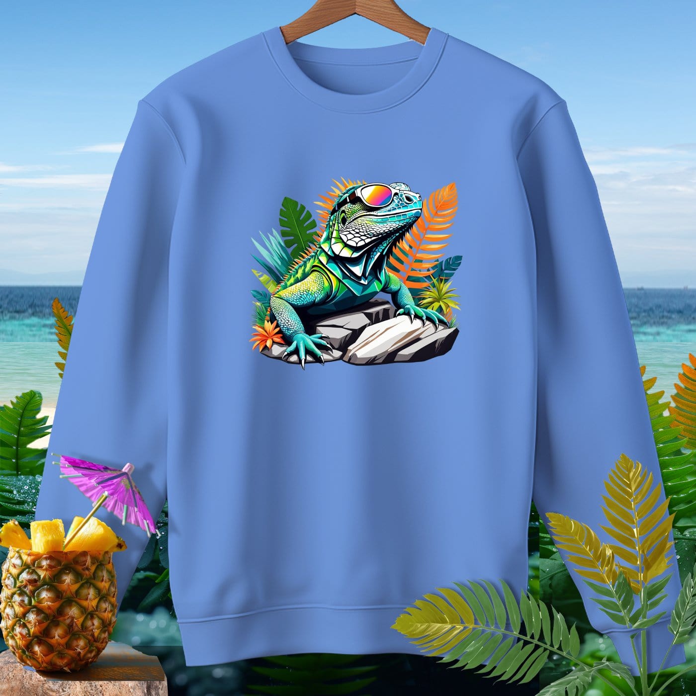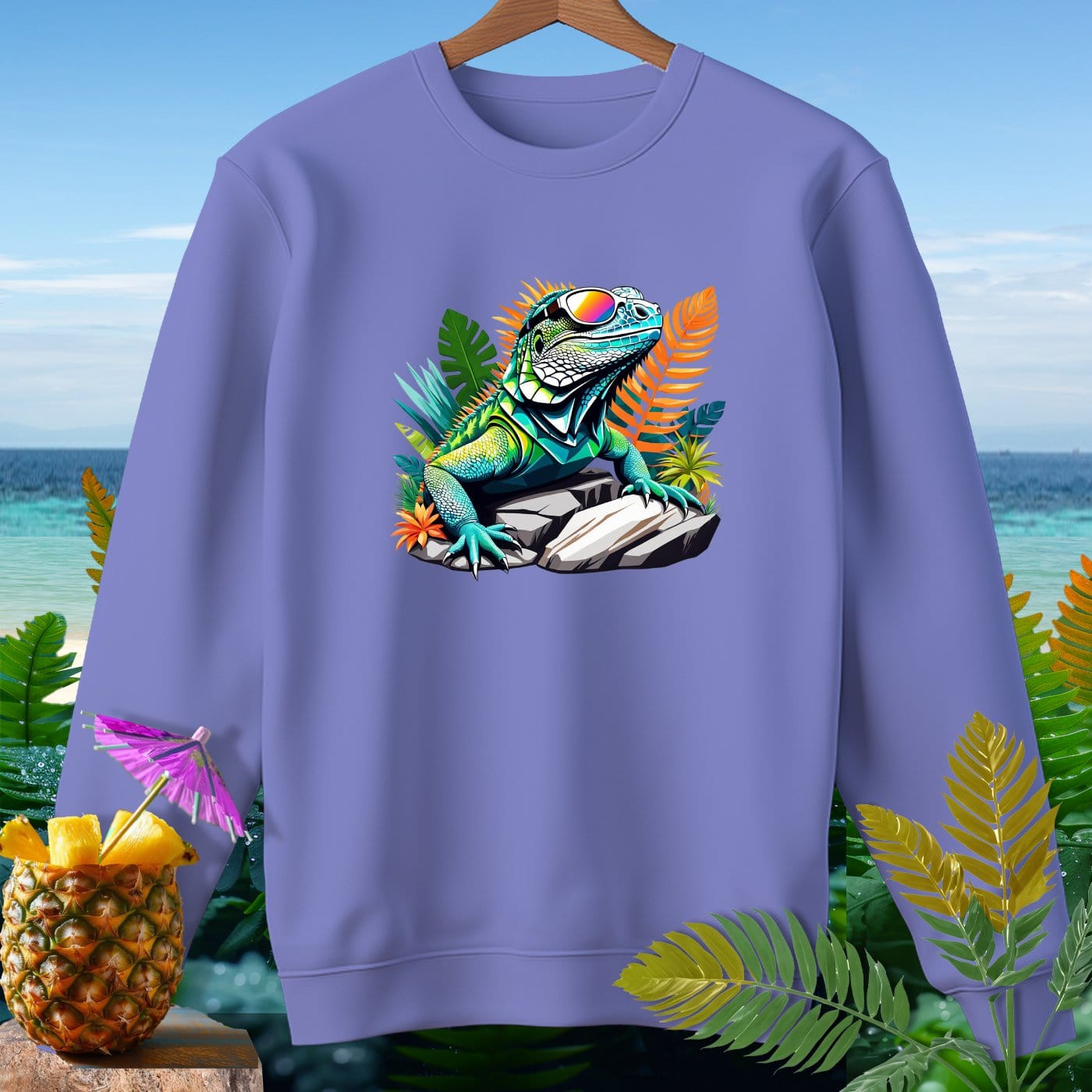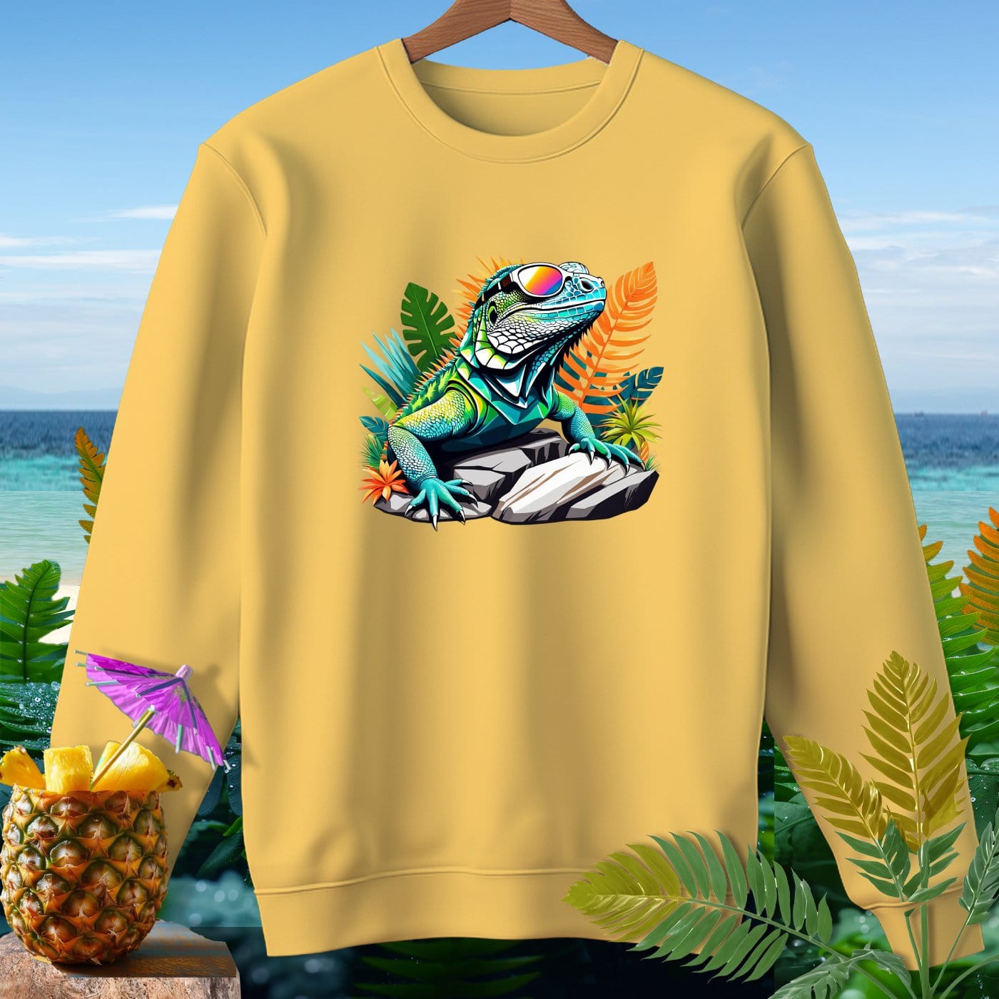 Elevate your beachwear with our Premium Sweatshirt from Comfort Colors. Crafted for ultimate comfort, this garment-dyed sweatshirt features 80% soft ringspun cotton, ensuring a relaxed and cozy fit for all your beachy adventures. Adorned with a vibrant lizard design set against a backdrop of tropical leaves, this sweatshirt brings a splash of exotic flair to your wardrobe. Perfect for coastal strolls, bonfire nights, or casual outings, it's a must-have for those who love to embody the spirit of the ocean. Dive into style and comfort with this eye-catching piece!