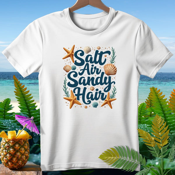 Dive into sassy beach vibes with our Aloha Thread Brand's Sassy Collection T-Shirt. Featuring the bold, eye-catching phrase "Salt Air Sandy Hair" surrounded by starfish, seashells, and delicate leaves, this tee captures the essence of sun-soaked days by the sea. Made from premium quality fabric for ultimate comfort and durability, it’s perfect for beach lovers and ocean enthusiasts who appreciate a touch of sass in their wardrobe.