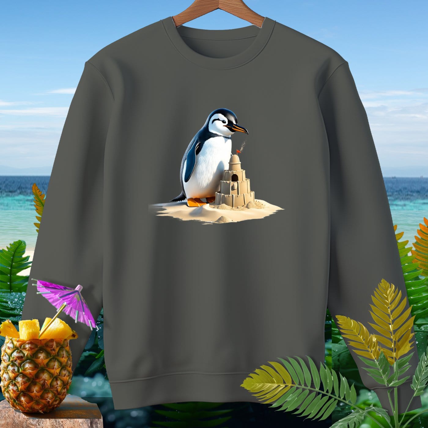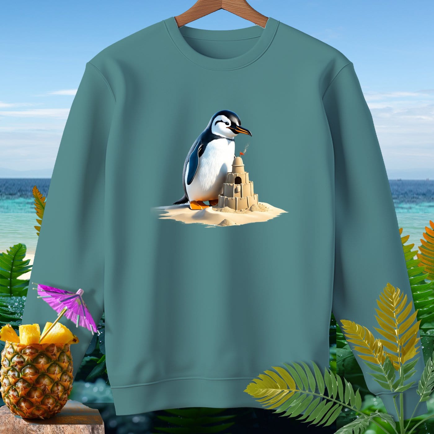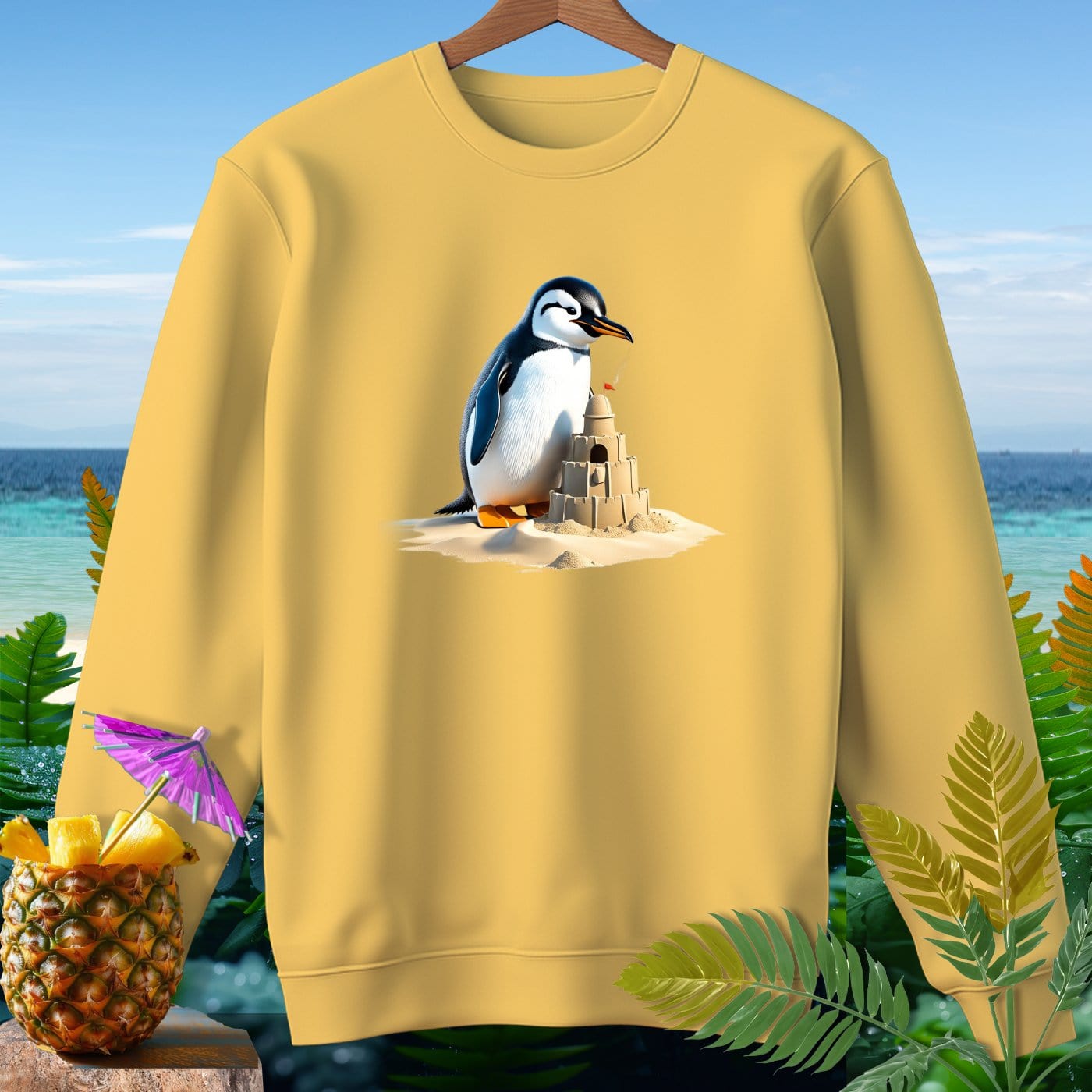 Dive into beachy bliss with our Premium Sweatshirt from Comfort Colors! This garment-dyed sweatshirt is crafted from 80% soft ringspun cotton, ensuring ultimate comfort and style. Perfect for beach weather, the relaxed fit allows you to enjoy every sun-kissed breeze while showcasing a fun penguin playing with a sandcastle design. Whether you're building sandcastles, strolling on the shore, or lounging by the waves, this sweatshirt is your go-to for effortless coastal vibes. Embrace the laid-back lifestyle with this must-have beachwear essential!