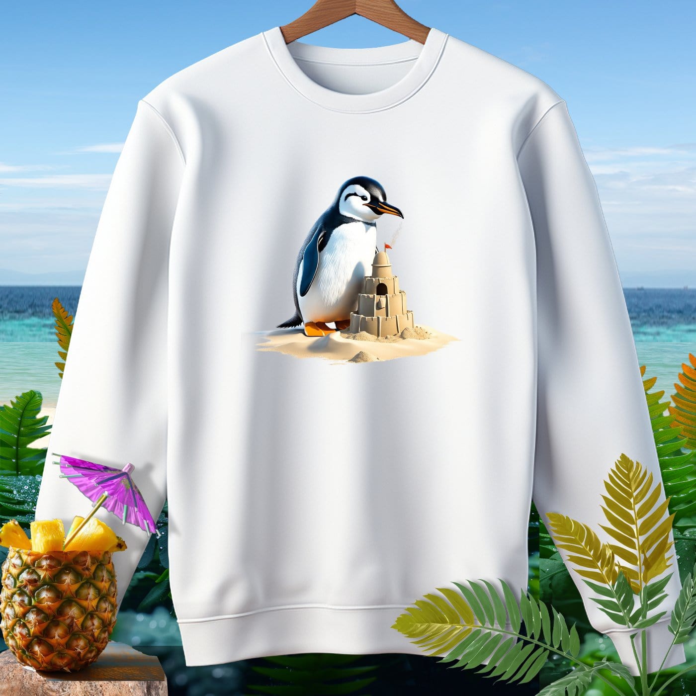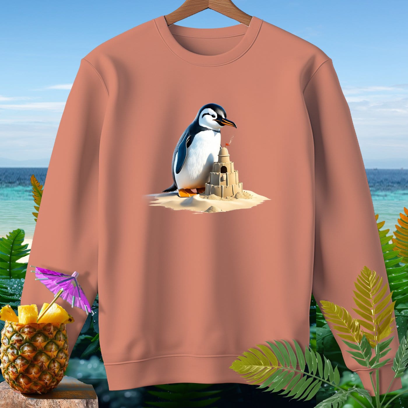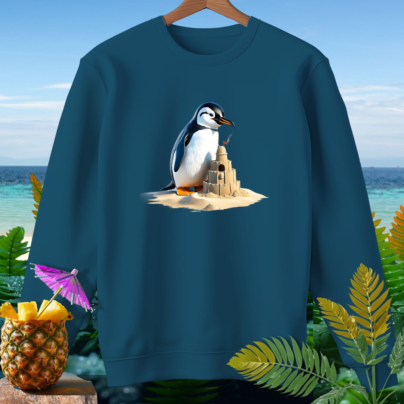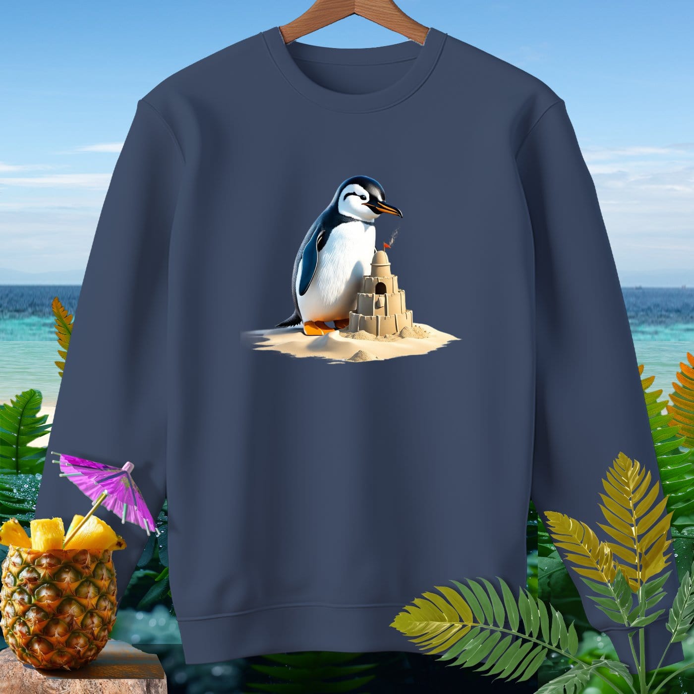 Dive into beachy bliss with our Premium Sweatshirt from Comfort Colors! This garment-dyed sweatshirt is crafted from 80% soft ringspun cotton, ensuring ultimate comfort and style. Perfect for beach weather, the relaxed fit allows you to enjoy every sun-kissed breeze while showcasing a fun penguin playing with a sandcastle design. Whether you're building sandcastles, strolling on the shore, or lounging by the waves, this sweatshirt is your go-to for effortless coastal vibes. Embrace the laid-back lifestyle with this must-have beachwear essential!