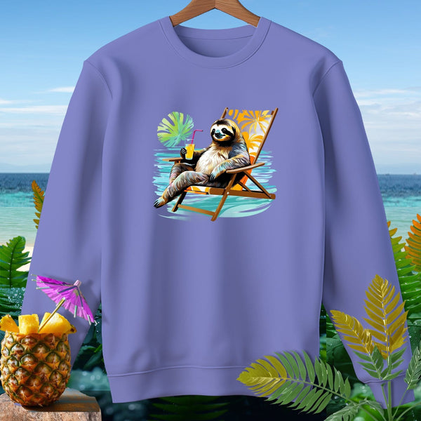 Embrace the ultimate beach vibe with our Premium Sweatshirt from Comfort Colors! Crafted with 80% soft ringspun cotton, this garment-dyed sweatshirt offers a relaxed fit that's perfect for lounging by the shore or catching the sunset. The playful design features a laid-back sloth basking in a tropical setting, making it an essential addition to your summer wardrobe. Stay comfy and stylish in beachy weather with this unique piece that's sure to turn heads.