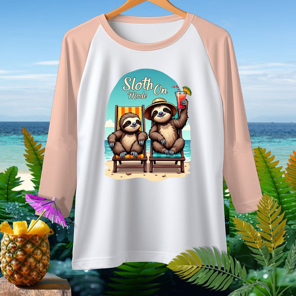 Unwind in style with our Raglan 3/4 Sleeve T-Shirt featuring an adorable sloth duo relaxing at the beach. Perfect for those who embrace the slower pace of life, this shirt blends comfort with a fun, laid-back design. Made with soft, breathable fabric, it's ideal for casual outings, beach trips, or cozy days at home. Whether you're a sloth lover or just need a reminder to take it easy, this shirt is a must-have addition to your wardrobe.