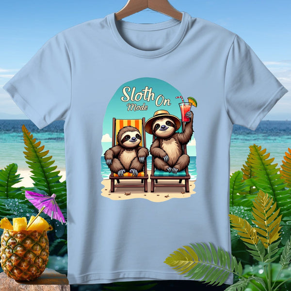 Embrace the laid-back vibes with our Aloha-Threads "Sloth Mode On" T-Shirt. Perfect for those who love to relax and enjoy vacation vibes, this tee features an adorable design of two sloths chilling on beach chairs, soaking up the tropical sun, and sipping on a refreshing drink. Ideal for those who love to slow down and savor the moment. Made from soft, breathable fabric, this shirt is perfect for beach days, lounging, or any casual outing where you want to showcase your easygoing style. Let the world know it's time to kick back and take it easy with this fun and stylish t-shirt. Perfect gift for sloth lovers and beach enthusiasts!