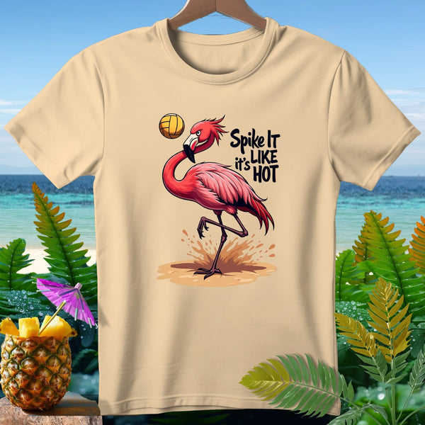 Embrace the tropical vibes with our Aloha-Threads T-Shirt featuring a fun and vibrant flamingo ready to spike the volleyball! Captioned with "Spike It, It's Like Hot," this tee is perfect for relaxing vacations and sun-soaked days. Made from high-quality, breathable fabric, it offers comfort while showcasing your playful, laid-back style. Add a touch of paradise to your wardrobe with this standout piece!