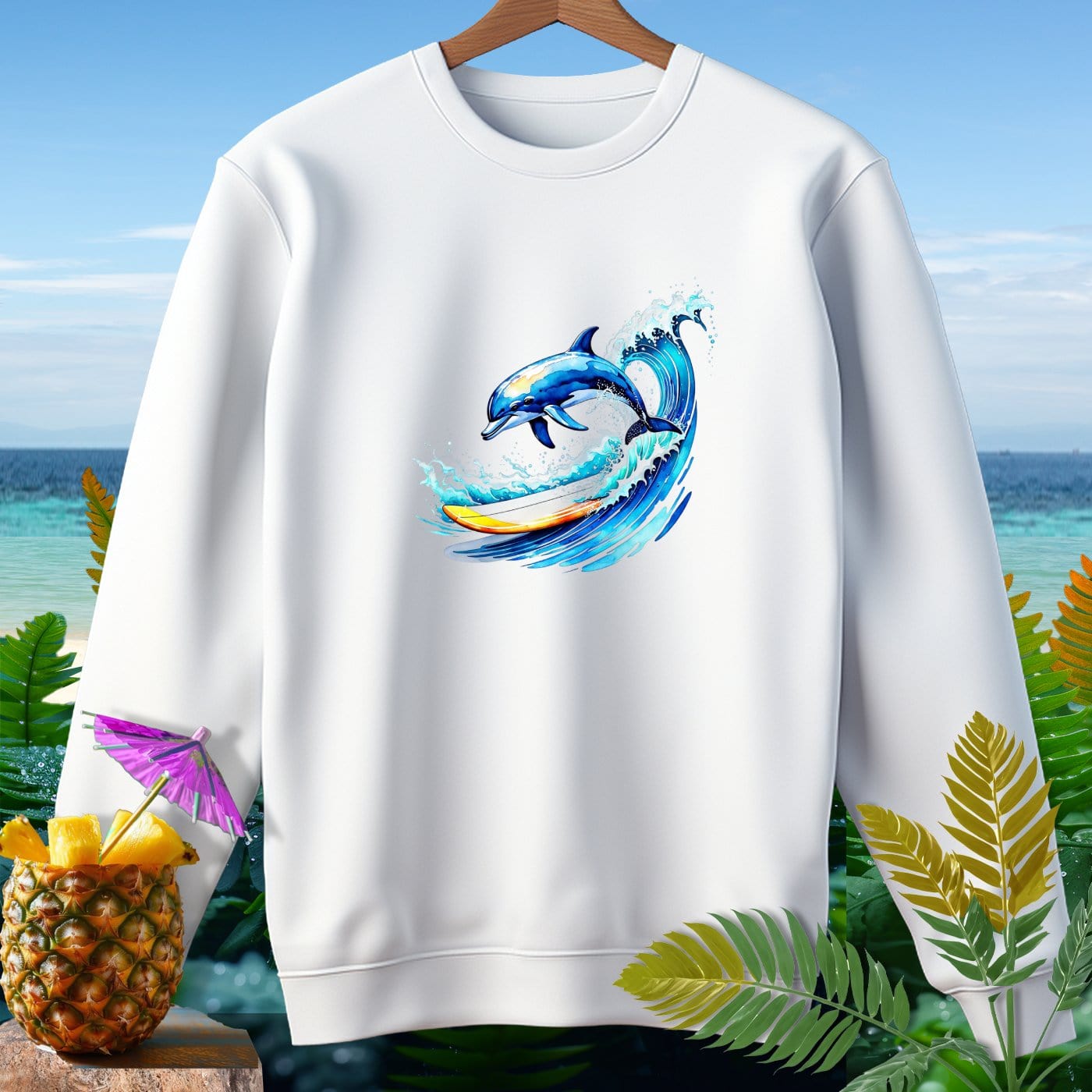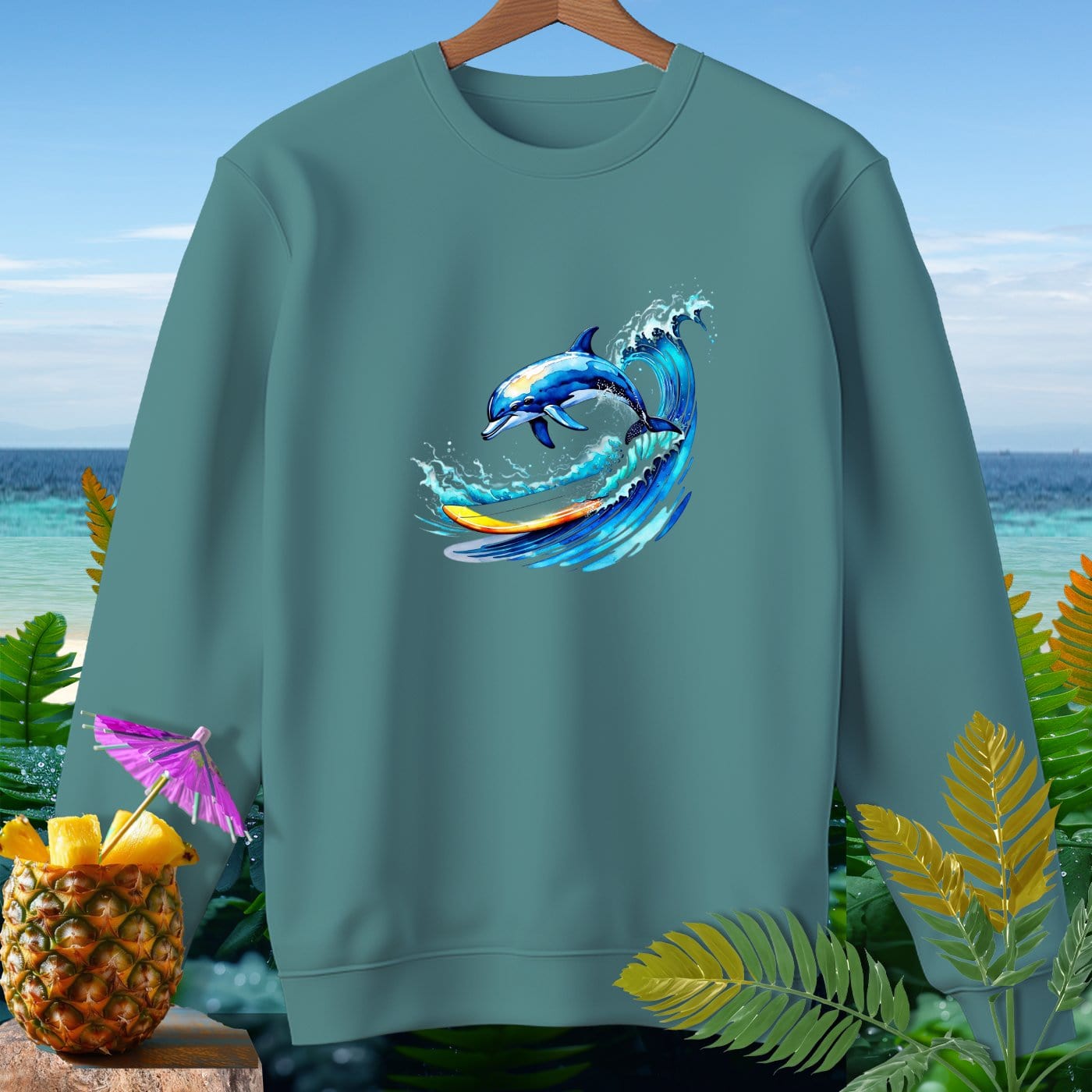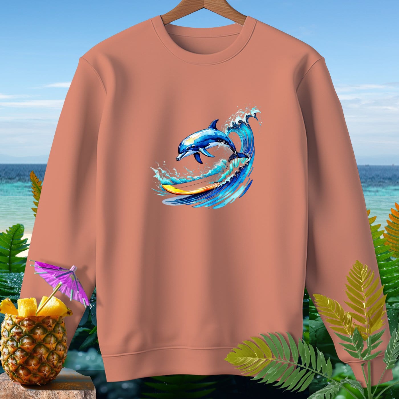 Dive into comfort with our Premium Sweatshirt from Comfort Colors. Made with 80% soft ringspun cotton, this garment-dyed sweatshirt offers a relaxed fit that's perfect for beachy weather. Featuring a vibrant dolphin surfing design, it encapsulates the spirit of the ocean and adds a splash of fun to your casual wardrobe. Whether you're heading to the beach or just dreaming of waves, this sweatshirt is your go-to for cozy, stylish vibes.