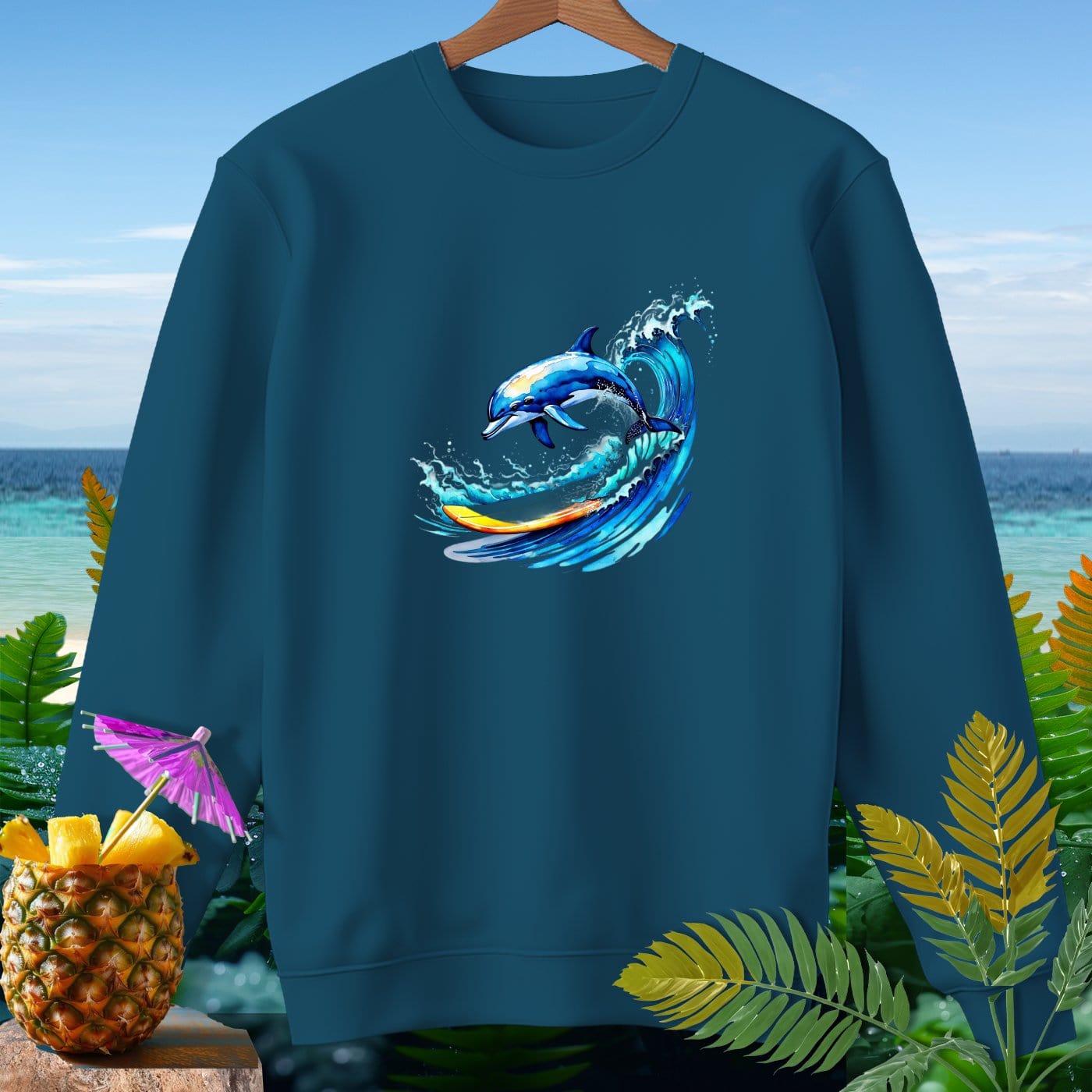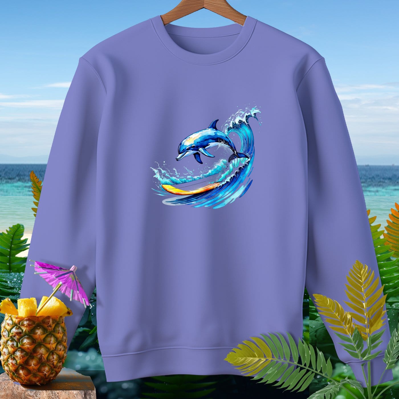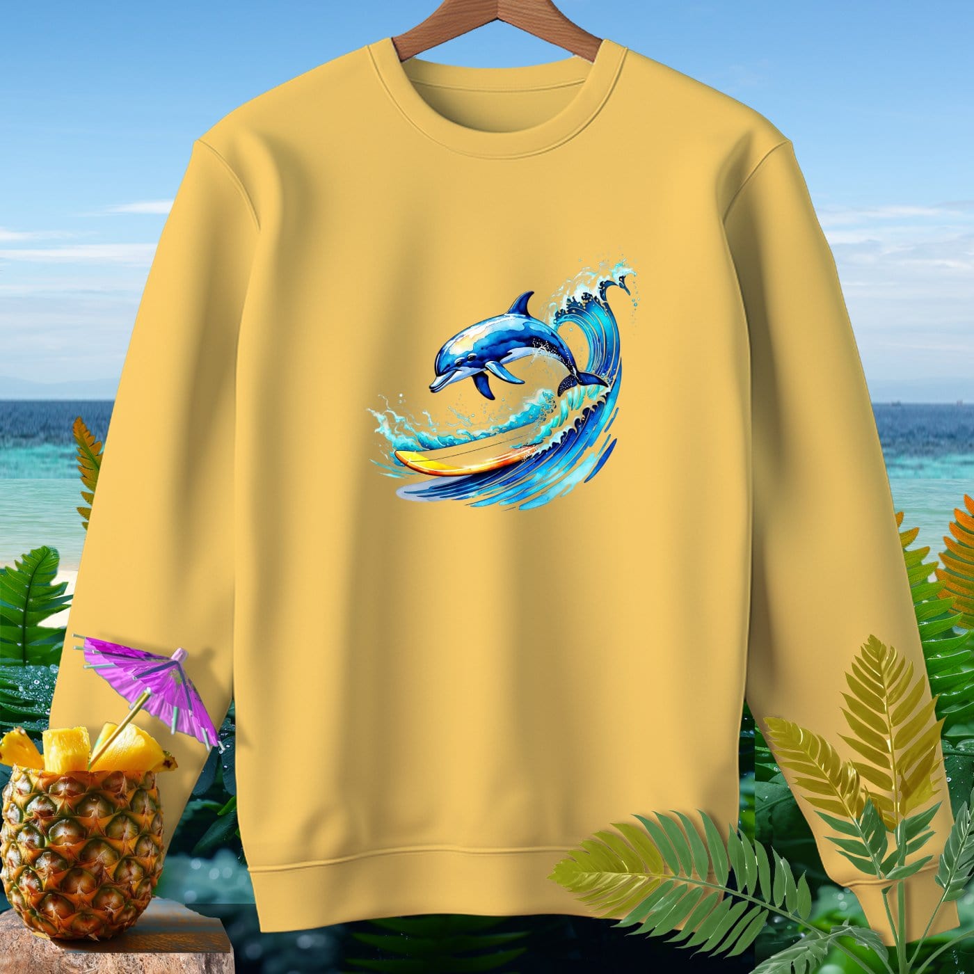 Dive into comfort with our Premium Sweatshirt from Comfort Colors. Made with 80% soft ringspun cotton, this garment-dyed sweatshirt offers a relaxed fit that's perfect for beachy weather. Featuring a vibrant dolphin surfing design, it encapsulates the spirit of the ocean and adds a splash of fun to your casual wardrobe. Whether you're heading to the beach or just dreaming of waves, this sweatshirt is your go-to for cozy, stylish vibes.