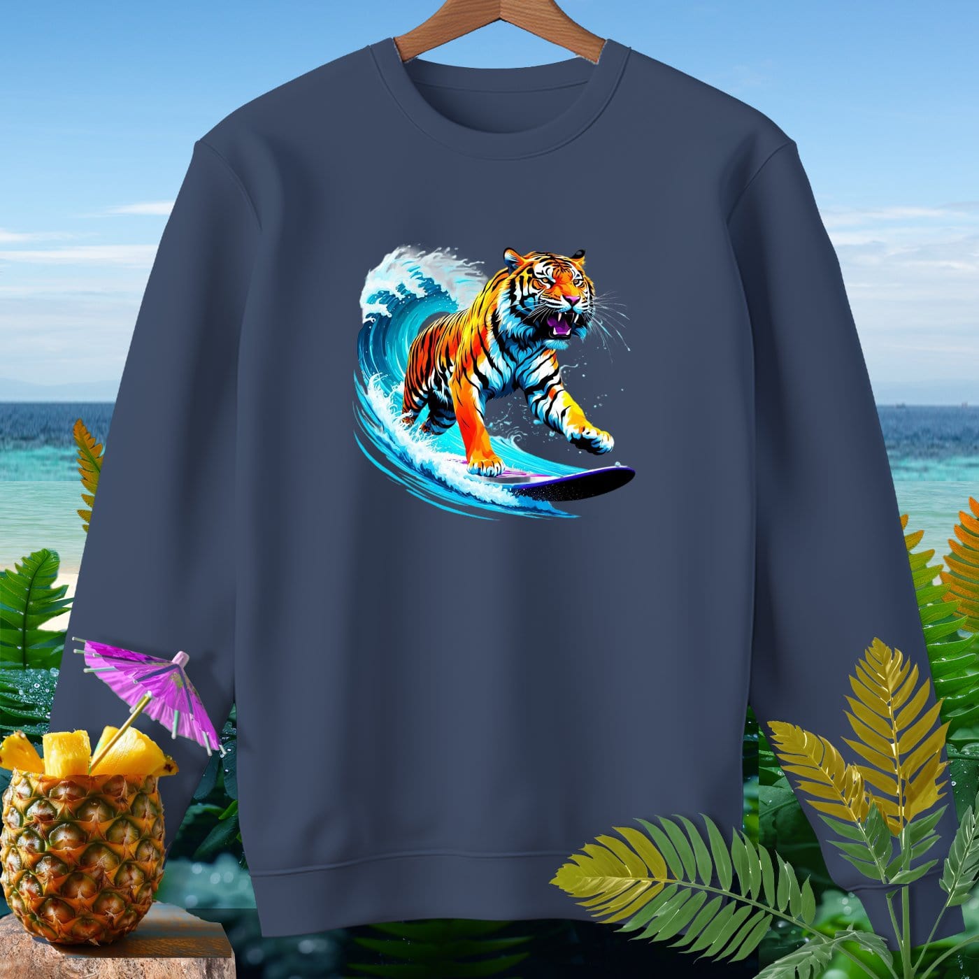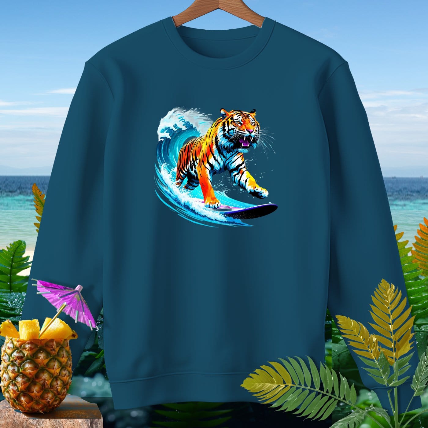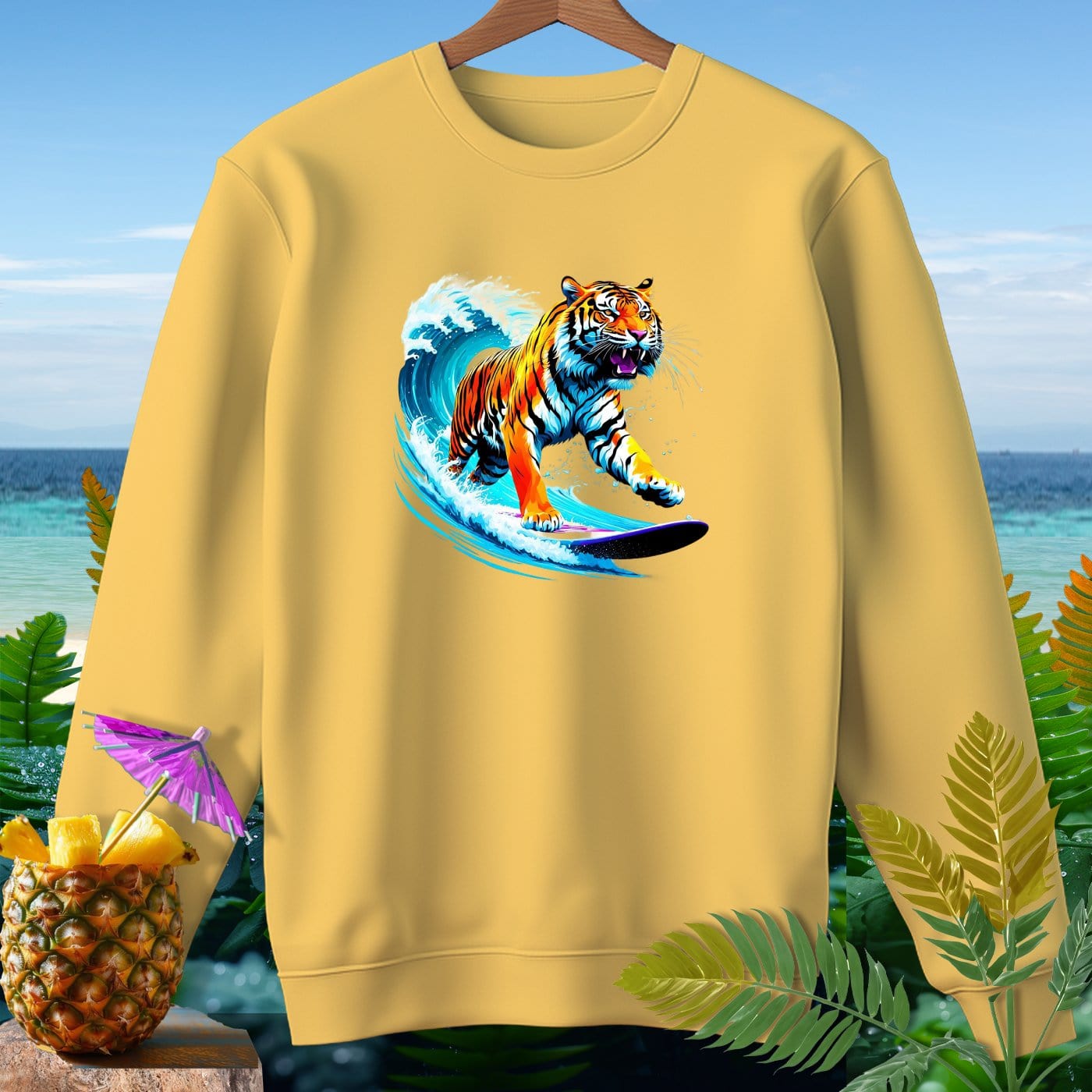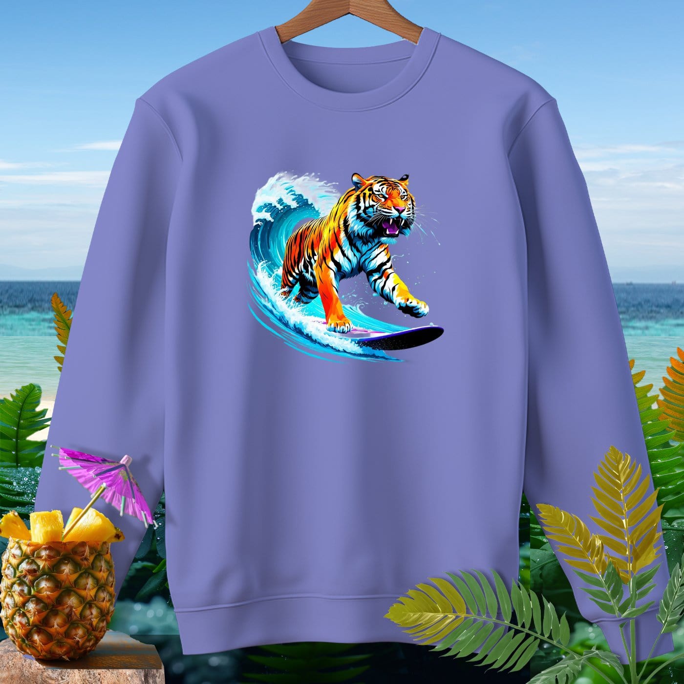 Dive into tropical vibes with our Premium Sweatshirt from Comfort Colors. Crafted from 80% soft ringspun cotton, this garment-dyed beauty promises unbeatable comfort and style. Featuring a vibrant and fierce surfing tiger graphic, this relaxed fit sweatshirt is perfect for beachy weather. Whether you’re catching waves or relaxing by the shore, this sweatshirt ensures you stay stylish and cozy. Embrace the sun and surf with the wild spirit of adventure!
