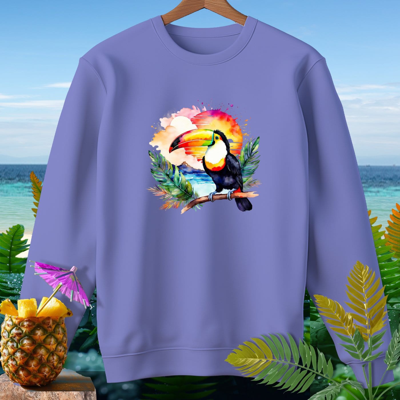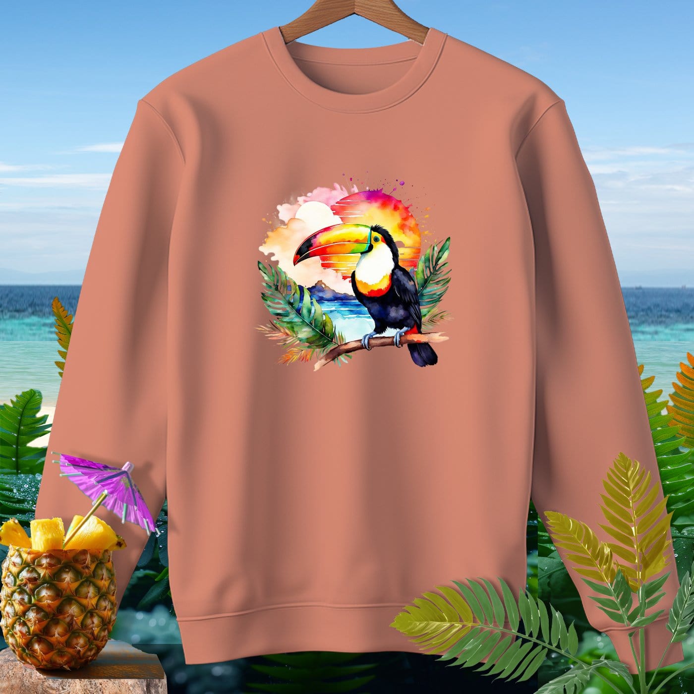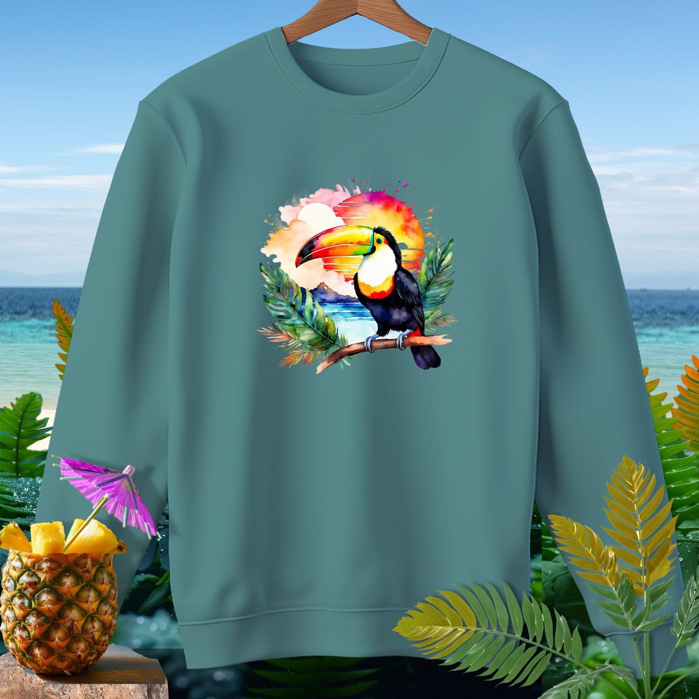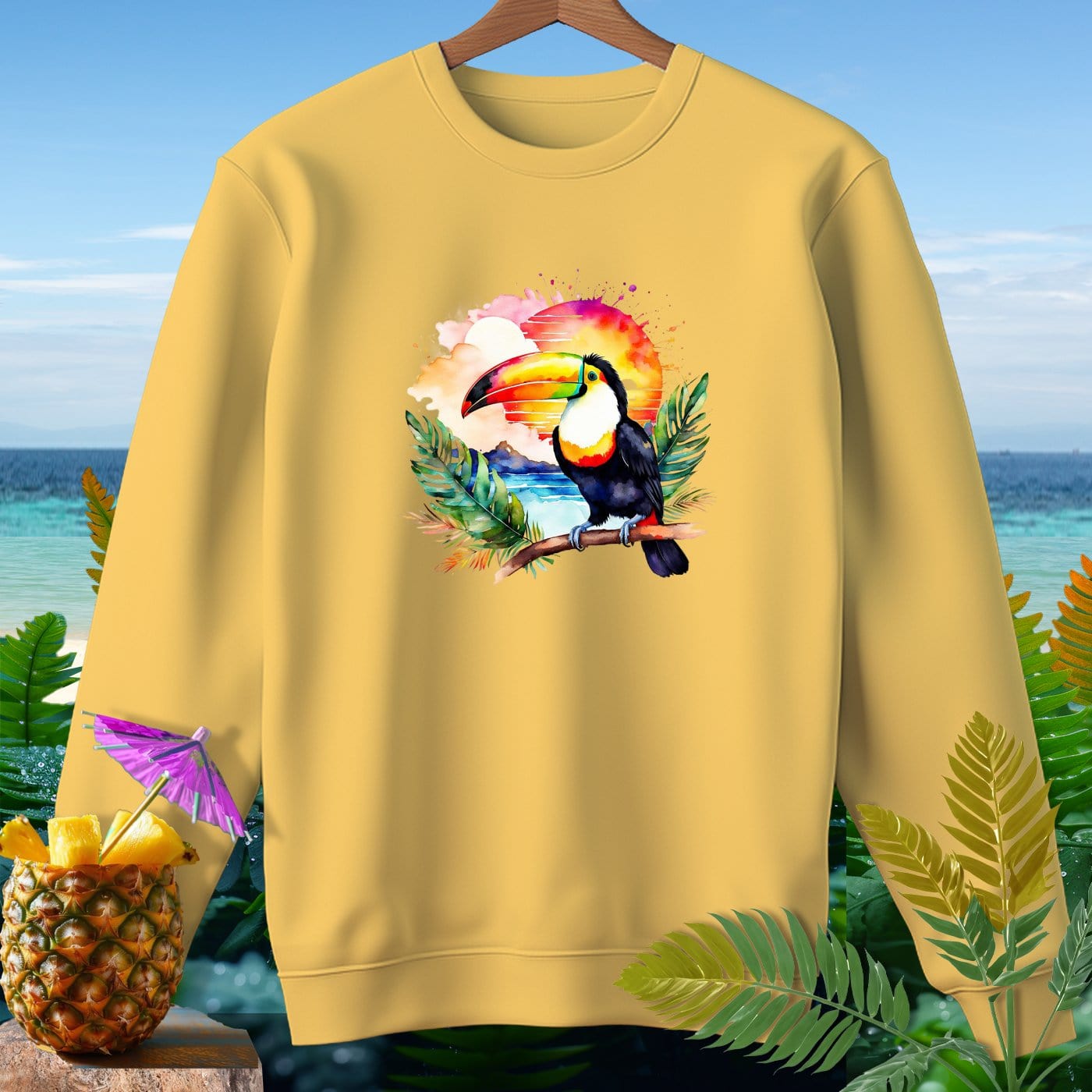 Elevate your beachy vibes with our Premium Sweatshirt from Comfort Colors! This stunning garment showcases a vibrant toucan design set against a tropical sunburst, perfect for those sunny coastal days. Crafted from 80% soft ringspun cotton, it offers supreme comfort with a relaxed fit. The garment-dyed finish ensures a unique, laid-back style that only gets better with each wear. Feel the ocean breeze and embrace the tropical atmosphere with this must-have sweatshirt. Ideal for beach adventures, casual outings, or simply lounging in comfort.