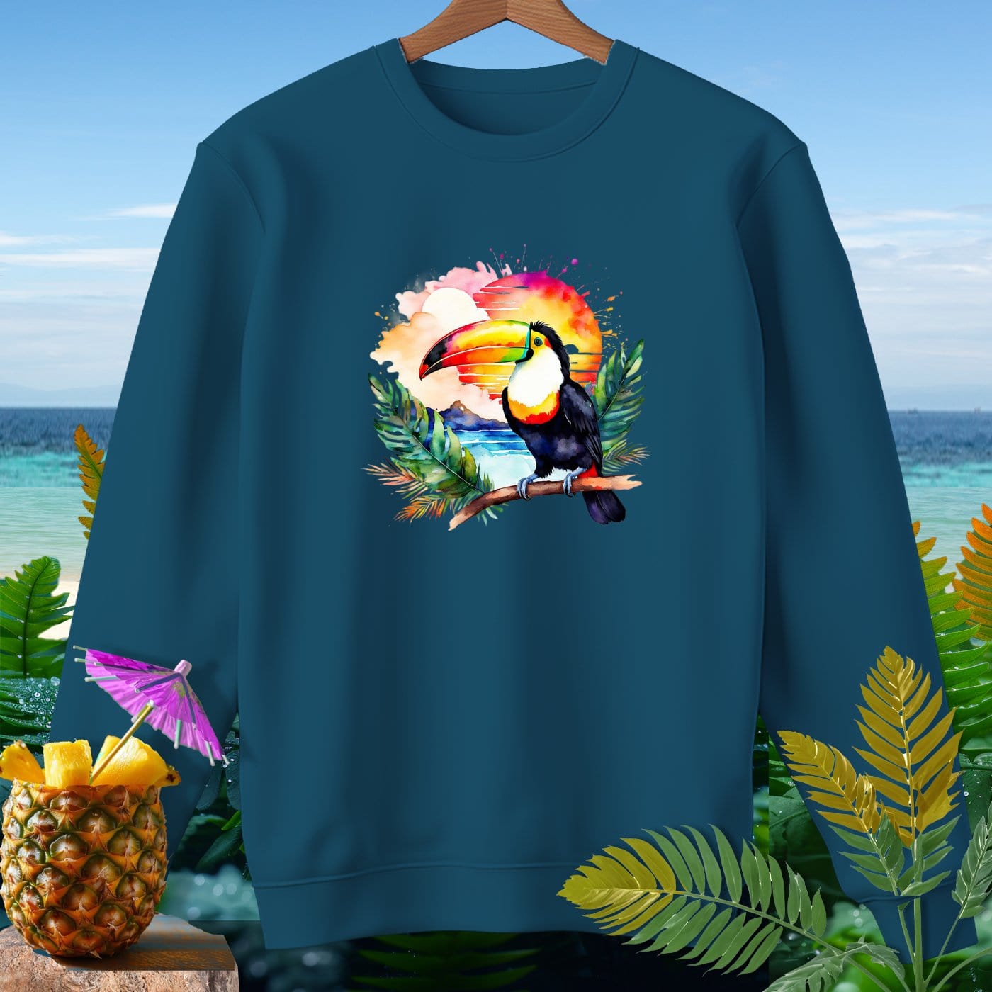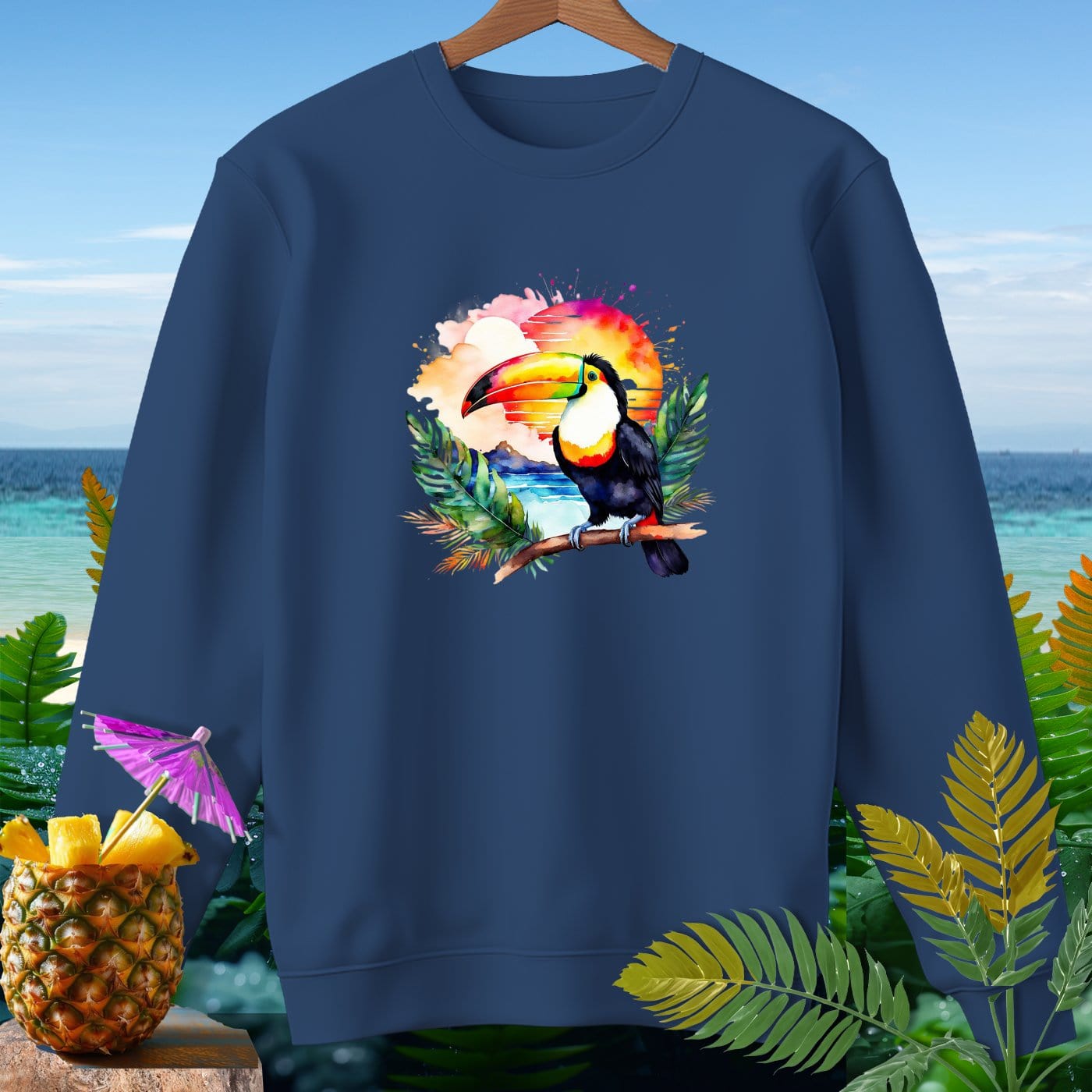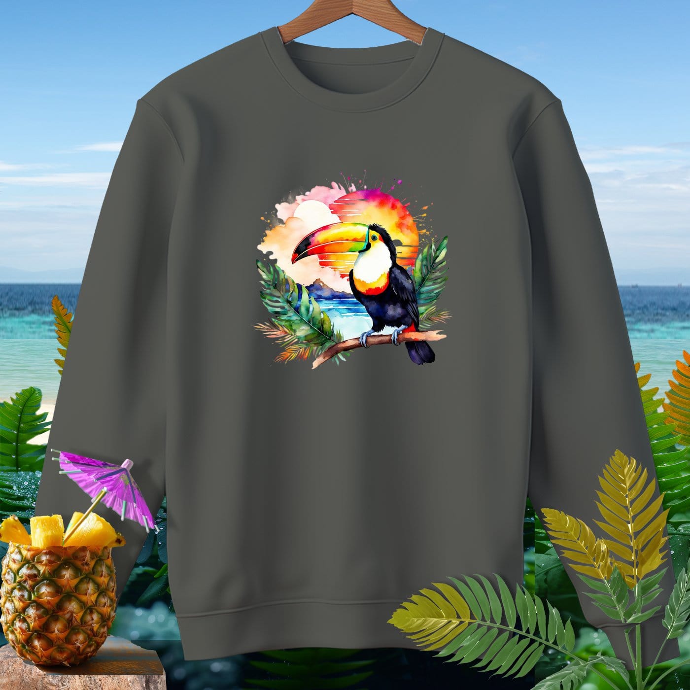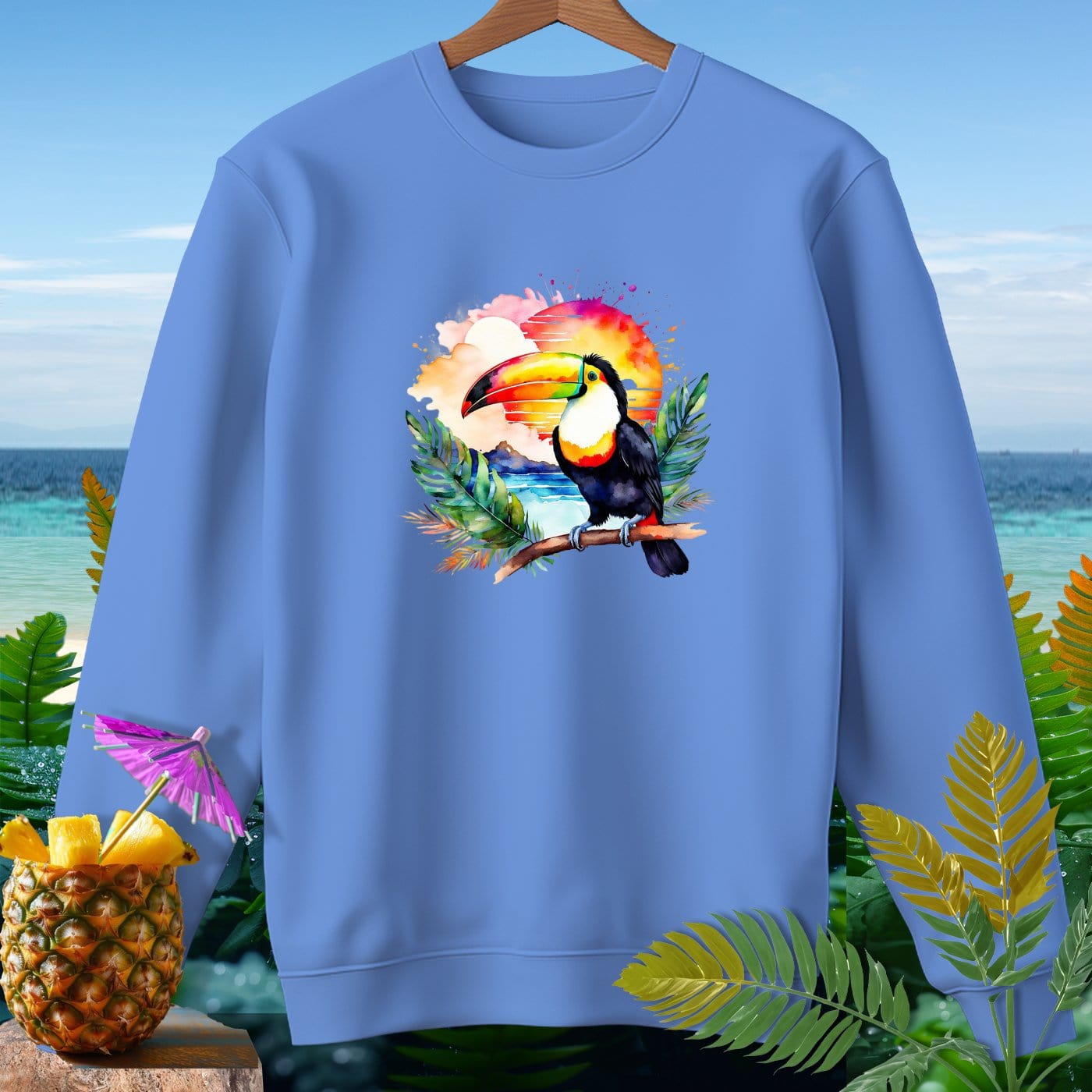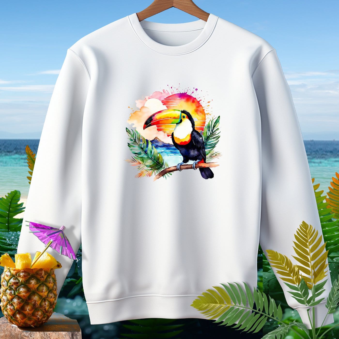 Elevate your beachy vibes with our Premium Sweatshirt from Comfort Colors! This stunning garment showcases a vibrant toucan design set against a tropical sunburst, perfect for those sunny coastal days. Crafted from 80% soft ringspun cotton, it offers supreme comfort with a relaxed fit. The garment-dyed finish ensures a unique, laid-back style that only gets better with each wear. Feel the ocean breeze and embrace the tropical atmosphere with this must-have sweatshirt. Ideal for beach adventures, casual outings, or simply lounging in comfort.