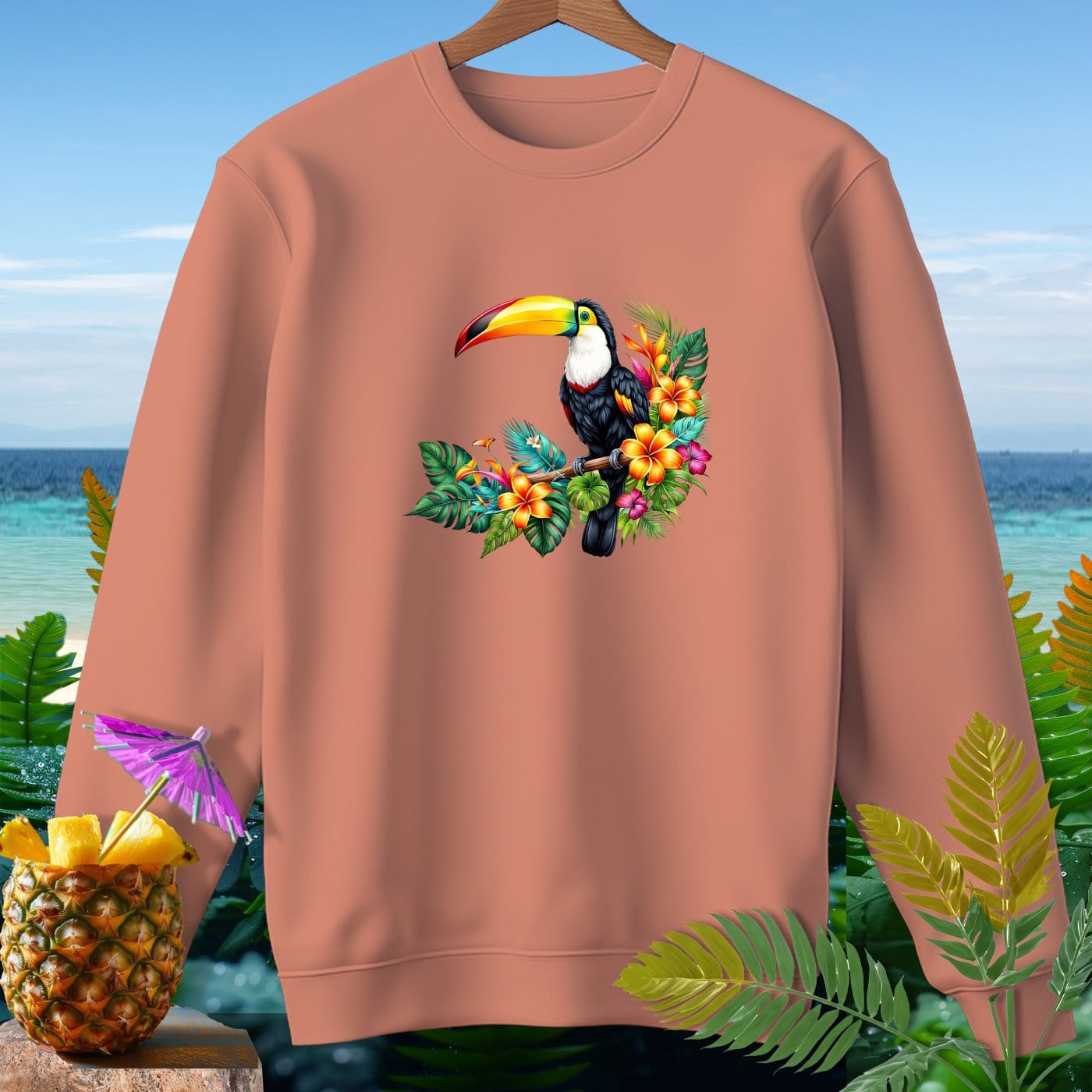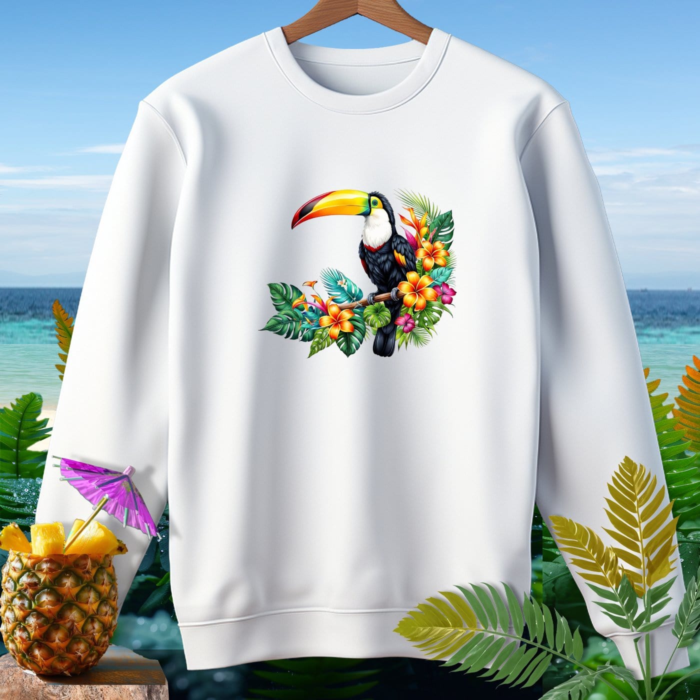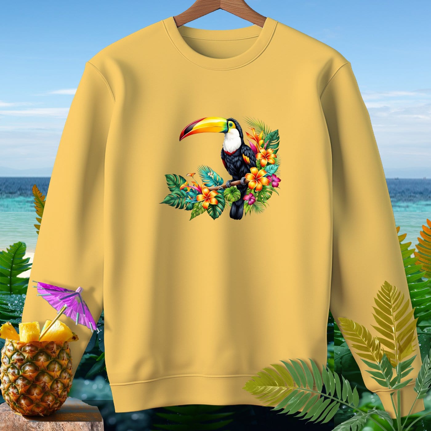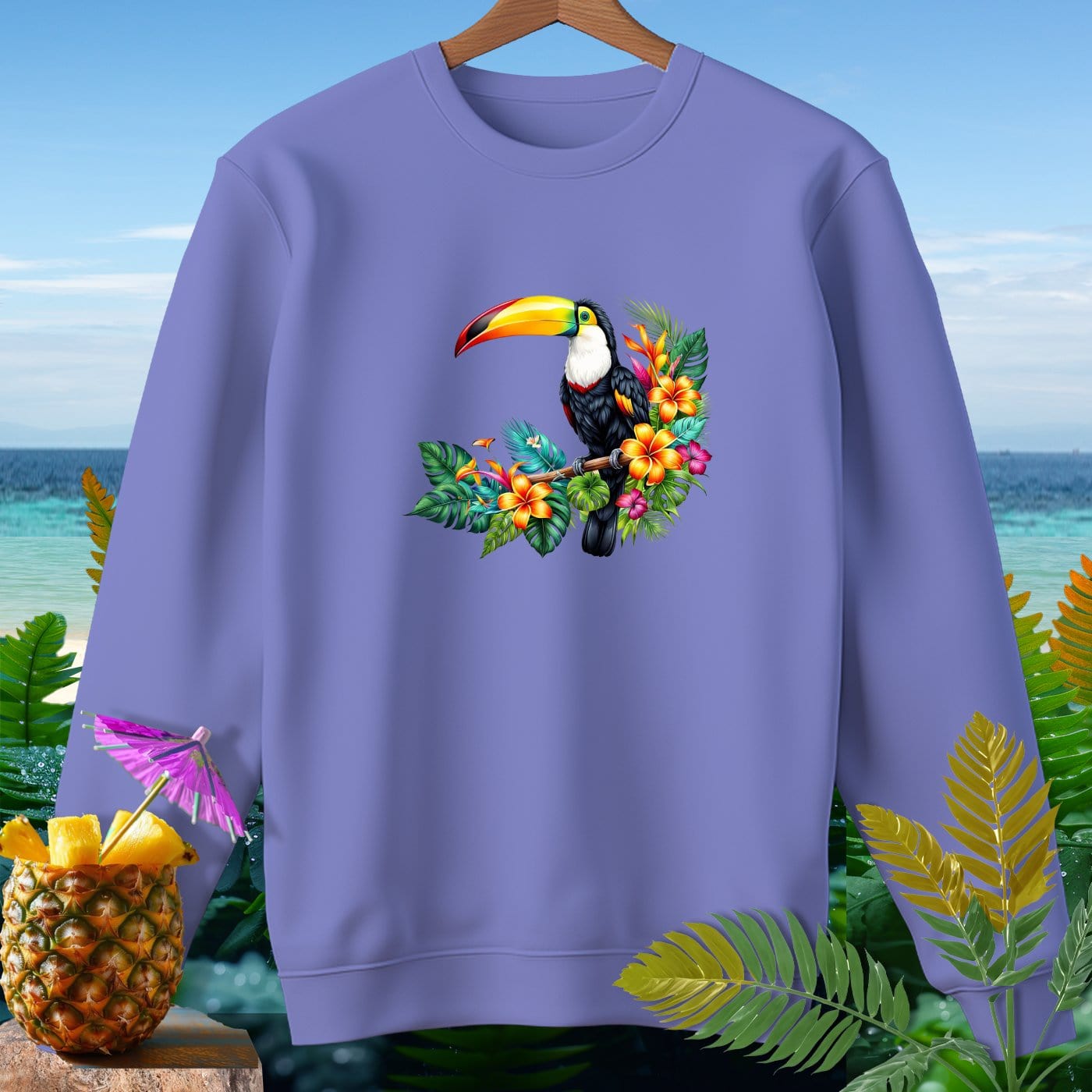 Celebrate the vibrant colors of the tropics with our Premium Sweatshirt from Comfort Colors. Crafted with 80% soft ringspun cotton, this garment-dyed piece features a relaxed fit perfect for beachy weather. The stunning artwork of a colorful toucan perched amongst lush tropical flowers will make you stand out in any summer crowd. Experience comfort and style in one go with this unique sweatshirt—ideal for beach trips, tropical vacations, or simply adding a touch of paradise to your everyday wear.