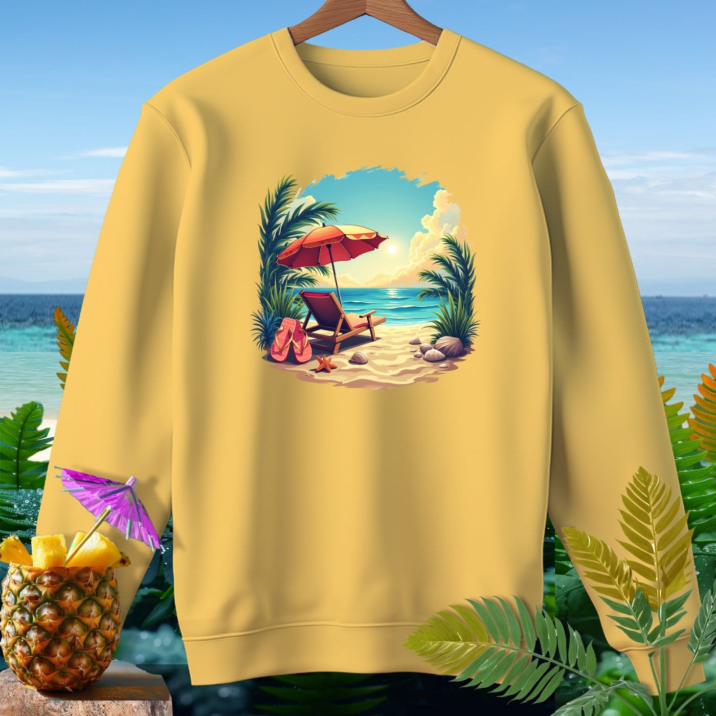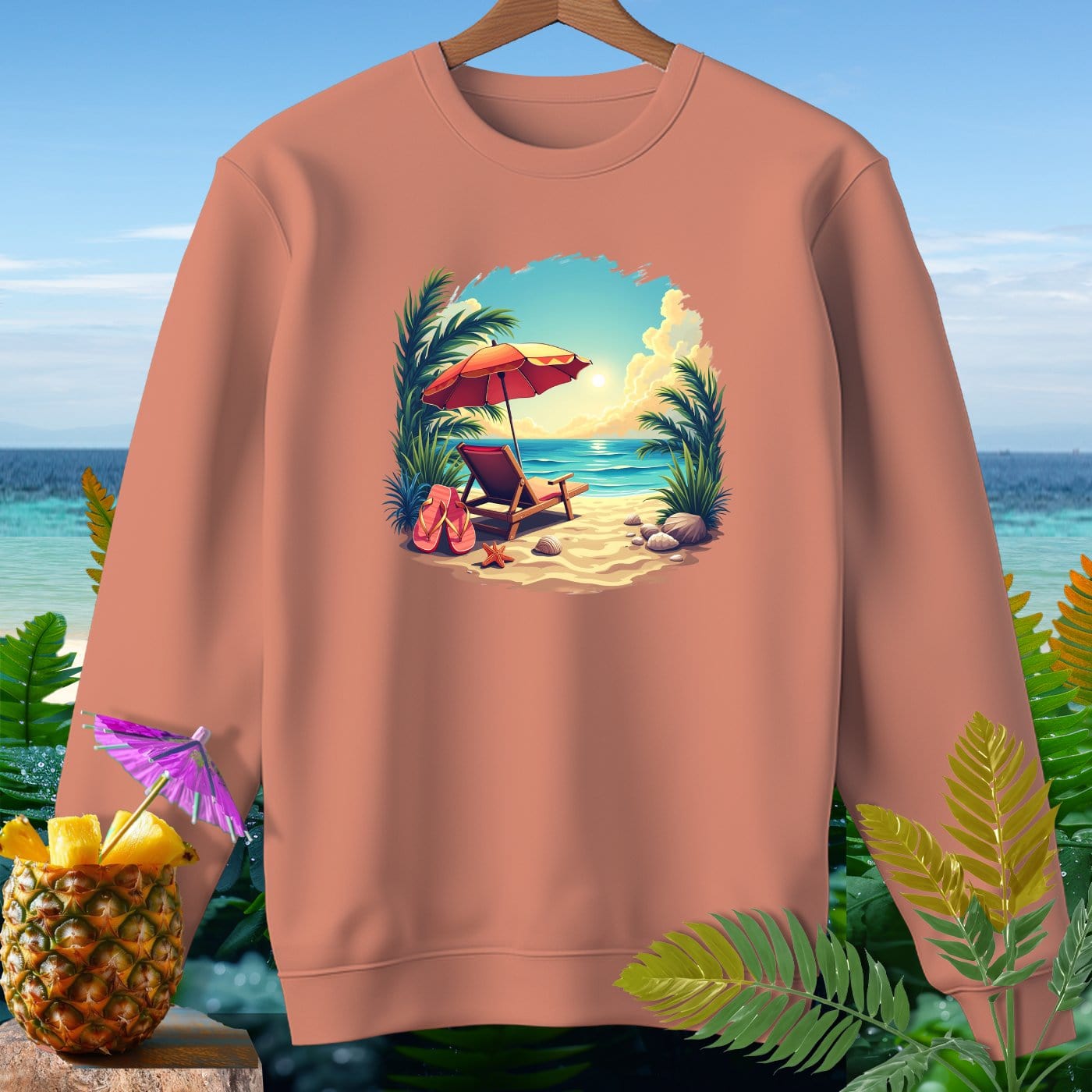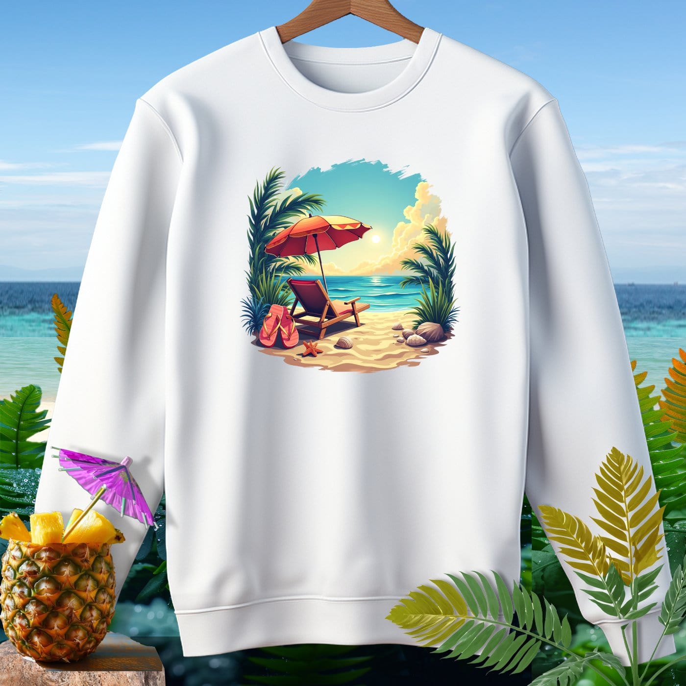Dive into ultimate comfort and style with our Premium Sweatshirt from Comfort Colors. Garment-dyed with 80% soft ringspun cotton, this sweatshirt offers a luxuriously relaxed fit perfect for beachy weather. Picture yourself strolling along the shore, with the gentle ocean breeze and golden sands under your feet, wrapped in the cozy embrace of this sweatshirt. Its vibrant design captures the essence of a tropical paradise, making it an ideal choice for those carefree, sunny days at the beach.