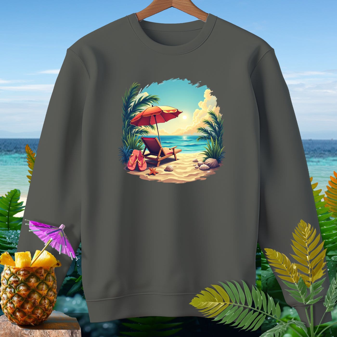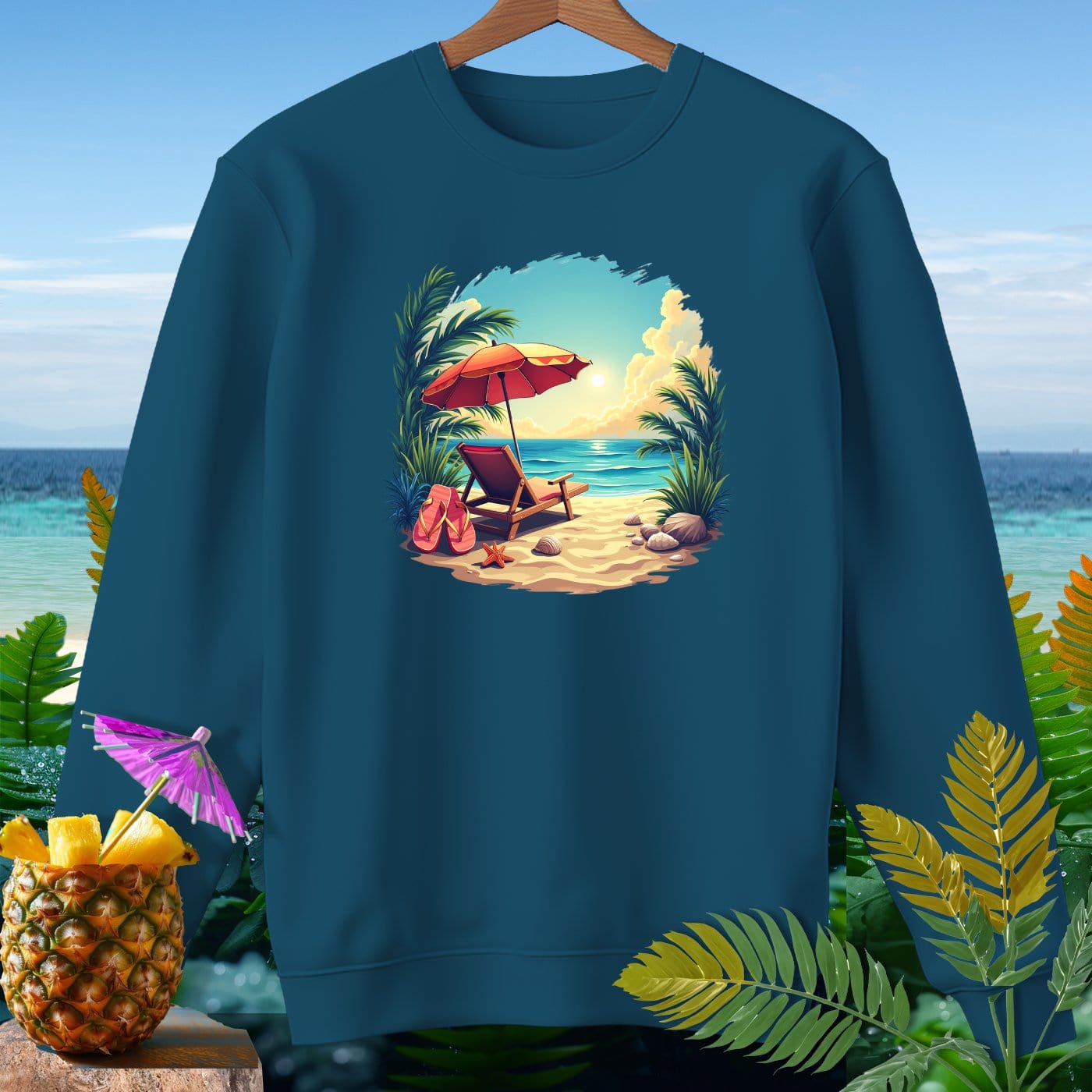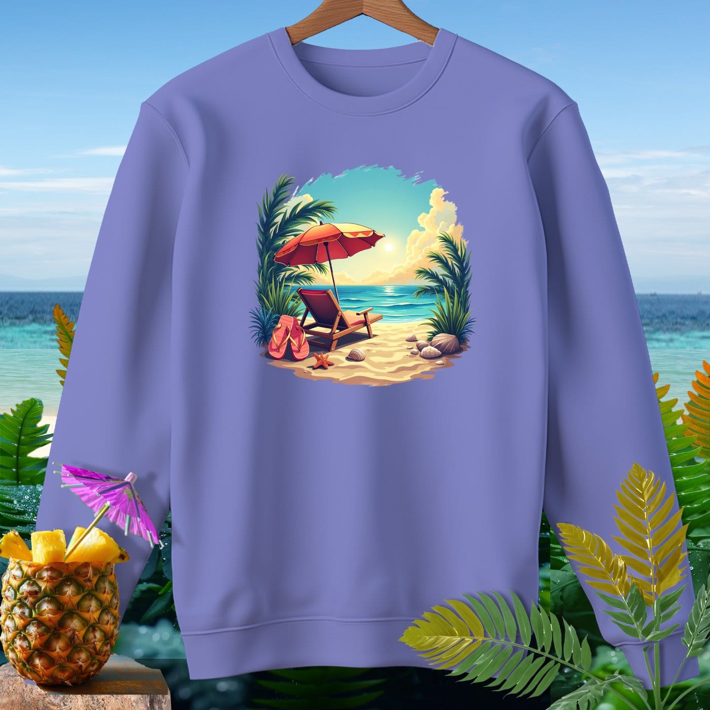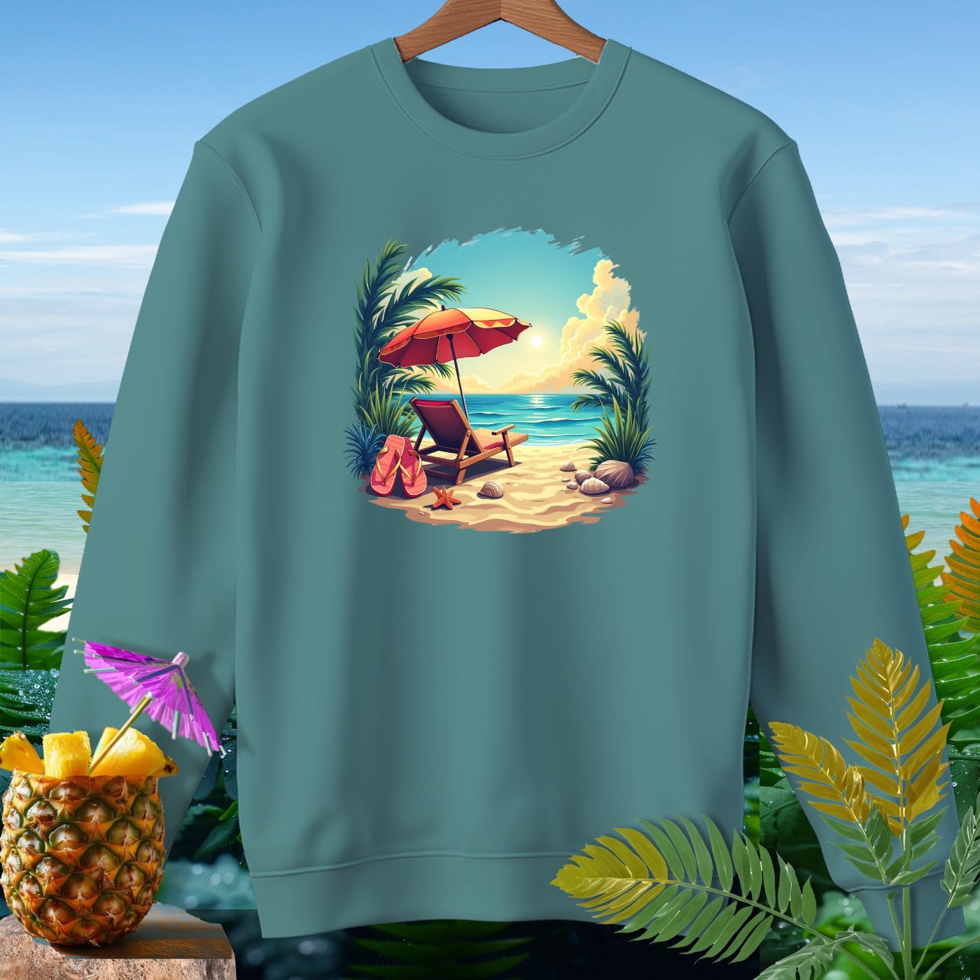 Dive into ultimate comfort and style with our Premium Sweatshirt from Comfort Colors. Garment-dyed with 80% soft ringspun cotton, this sweatshirt offers a luxuriously relaxed fit perfect for beachy weather. Picture yourself strolling along the shore, with the gentle ocean breeze and golden sands under your feet, wrapped in the cozy embrace of this sweatshirt. Its vibrant design captures the essence of a tropical paradise, making it an ideal choice for those carefree, sunny days at the beach.
